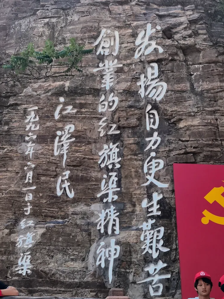 最后,在一块巨大的岩石上,看到了江泽民同志题写的“发扬自力更生艰苦创业的精神”。这些文字不仅是对历史的纪念,更是对未来发展的激励。站在岩石旁,回望整个景区,心中涌起无限感慨。