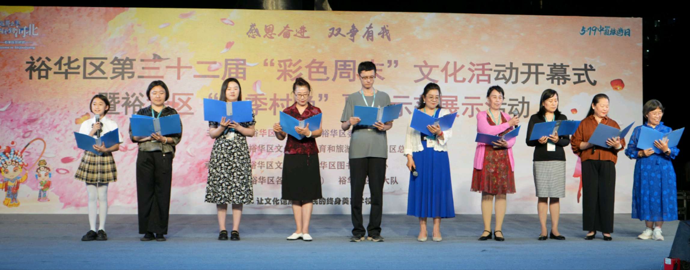 “感恩奋进 双拥有我”裕华区第32届彩色周末开幕式暨裕华区四季春晚夏季示范展示活动的现场,我们以歌为媒,以舞为介,隆重开启这场夏日的文化盛宴。这次活动是由中共石家庄市裕华青年宣传部,裕华区委网信办,裕华区文化广电体育旅游局,市南区总工会主办,裕华区文化馆,裕华区图书阅览中心,裕华区各街道办,裕华区园林大队承办。【我是朗读者】裕华区图书馆的优秀朗读者,共同朗读一首作品《这盛世如您所愿》