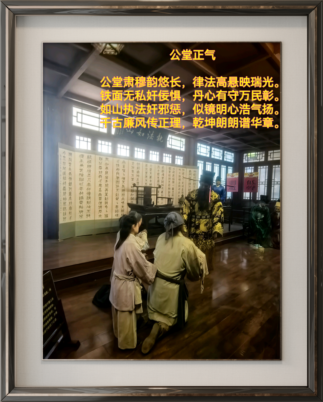 公堂肃穆韵悠长,律法高悬映瑞光。
