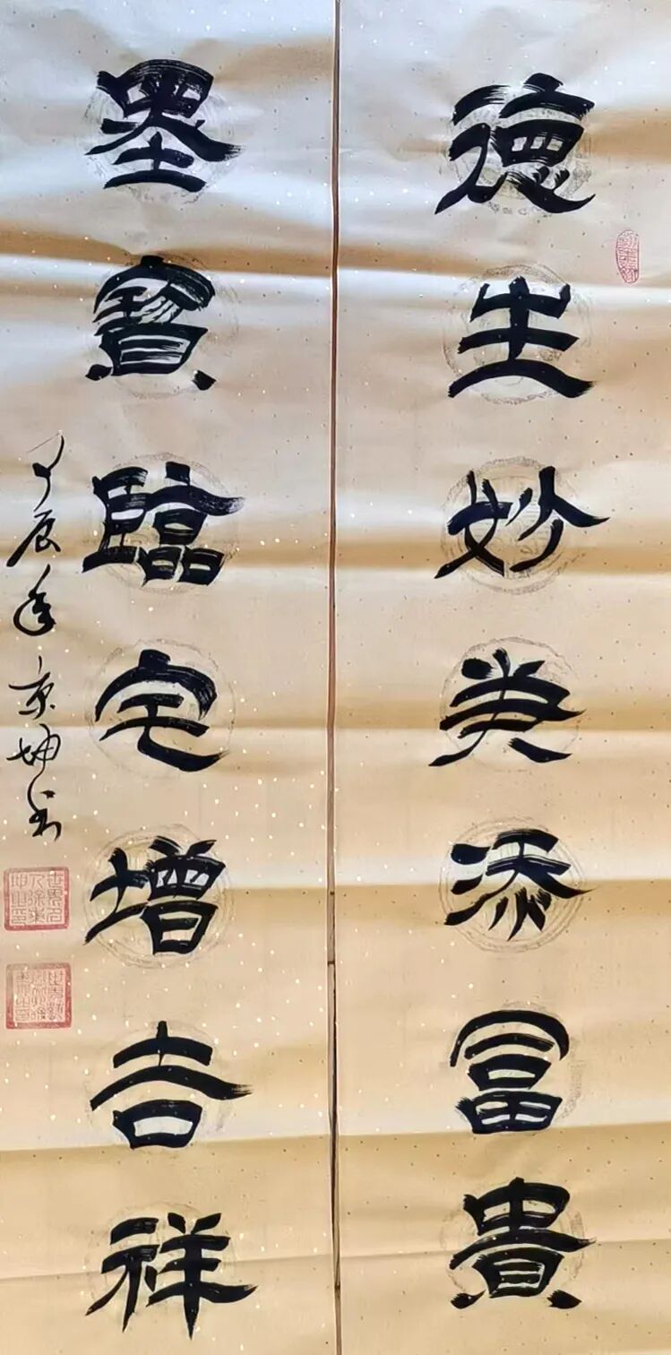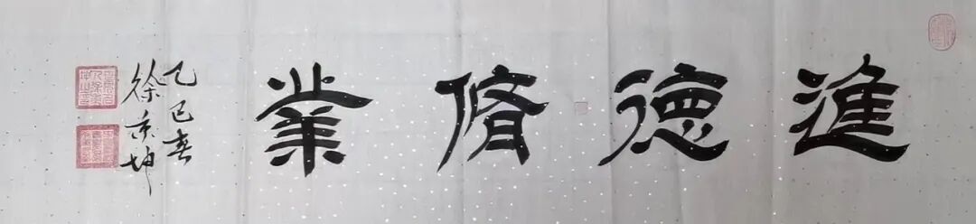 文以载道,翰墨华章,业内多赞叹徐秉坤先生书法富有古意,此言非虚!且依我看,不单单是有古意,更是有威仪神采的碑骨风范!而达此境界,自然也是缘乎于徐秉坤先生多年来的由技入道,深师碑帖求索正宗,化为己用渐老渐熟。再有,得形似者有尽而领神味者无穷。今徐秉坤先生耕耘书坛多年,又有学识宏深的修养加持,所以其整幅书法作品也是词气清正,肃穆蕴藉,不失为后者!常言得时不如得器,得器不如得志,便也就是这个道理。而这种书外功夫的经营沉淀,也正是为徐秉坤的翰墨问道起到了关键性作用。