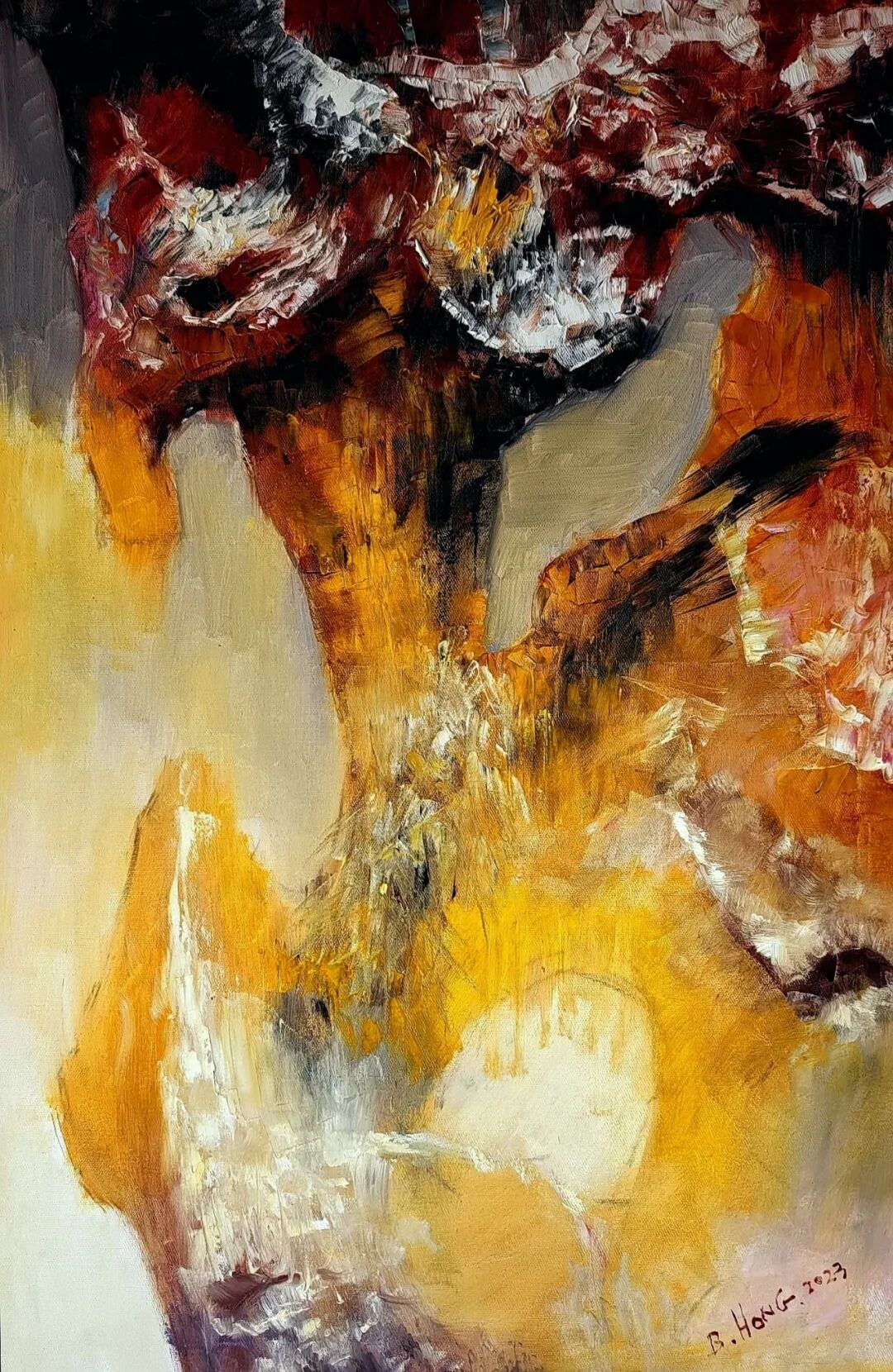 如果说,普通人的油画作品是源于纯粹的西方文化,那么今日洪斌先生的油画语言,则就是具有着极其鲜明的个人艺术风格,而这种风格的形成,自然也是离不开他数十年如一日的写生积淀。作为新时代的油画艺术家,洪斌先生与那些追逐市场、缺乏文化根基的“唯利派”截然不同。他的作品没有丝毫浮夸的装饰或轻佻的娱乐性,取而代之的是一种直抵灵魂的精神力量。也正是这种力量,才让他的画笔既能酣畅淋漓地抒写内心世界,又能深刻折射出时代的风貌与文化的厚重底蕴。
