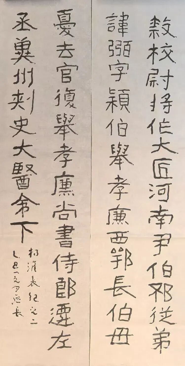 (以上为金熙长用汉碑笔意化写楷书及行书集联)