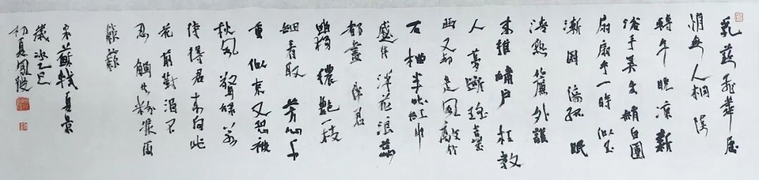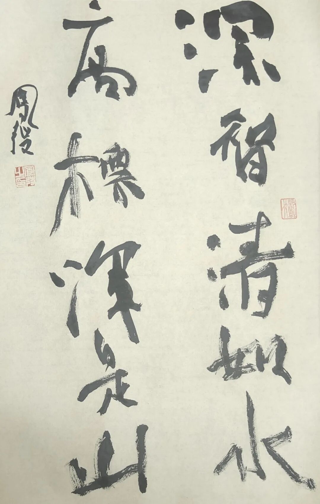 初见其作,便觉一股清新之气扑面而来。字里行间,透露着一种超脱尘世的宁静与淡泊。峰涛先生以笔为舟,以墨为海,引领观者进入一个充满诗意与哲思的世界。其笔触流畅而不失力度,每一笔、每一划都仿佛经过千锤百炼,既展现了书法的技法之美,又蕴含了深厚的文化内涵。