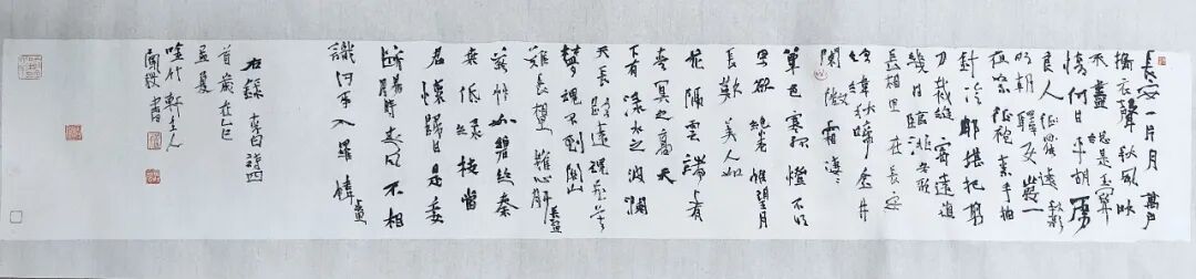在结构上,他的书法作品布局严谨,疏密有致。或大或小、或轻或重的字迹,错落有致地排列在宣纸之上,宛如一幅精美的画卷,让人目不暇接。他善于运用留白,使得整幅作品在视觉上更加空灵、透气,给人以无限遐想的空间。