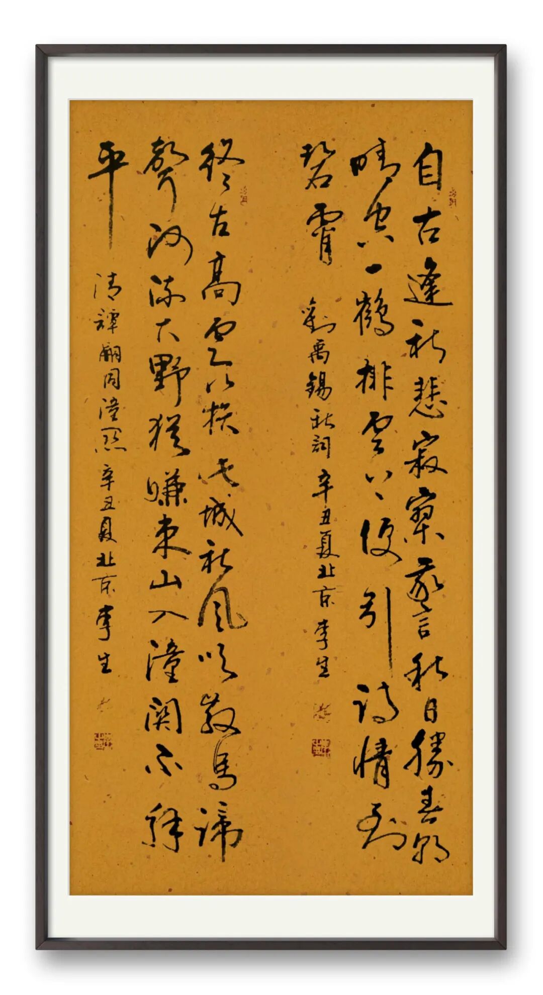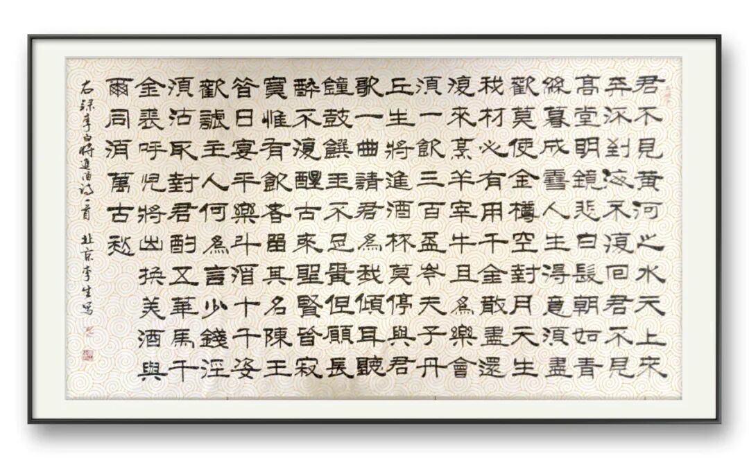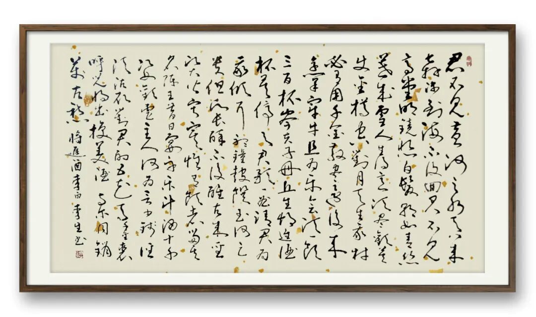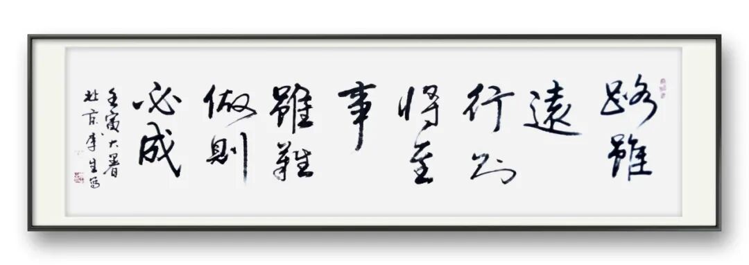 李生以其深厚的学识为基,穿梭于千年书法历史长廊。他俯身研读二王的飘逸灵秀,仰观苏东坡的豪放豁达,品味黄庭坚的奇崛劲健,领略赵孟頫的典雅秀美,欣赏董其昌的潇洒出尘。将这些艺术瑰宝的精华巧妙吸纳,融入自己的书法创作之中,逐渐形成了独具一格、令人过目难忘的艺术魅力。“不积跬步,无以至千里;不积小流,无以成江海”,艺术的成熟从来不是一蹴而就,李生的书法作品,既有传统积淀的厚重与深沉,又涌动着锐意创新的鲜活力量。他秉持 “与古为新” 的创作理念,在传承传统艺术精髓的同时,大胆突破藩篱,以无畏的勇气拥抱变革,将时代的知识结构、多元的艺术思潮等元素,自然且巧妙地融入笔墨之间。李生宛如一座桥梁,上承晋唐书法的千古遗风,将那份古朴与神韵牢牢把握;下启现代书法流派,以创新之姿为后世开拓道路。凭借扎实深厚的书法功底与娴熟精湛的笔墨技巧,他挥毫泼墨,创作的书法作品自成风骨。这些作品在书法界掀起波澜,于收藏界亦备受青睐。不同于只专注字形笔法翻新的前辈,李生的创新之路更注重文化内涵的深度挖掘与艺术底蕴的丰厚积淀。李生深谙古人用笔的精妙之道,笔下作品韵律流转,美不胜收。而他书法成就的背后,更离不开其深厚的品性修养。其作品中,苍劲古拙的气韵与千变万化的线条交织,展现出独特的艺术张力。他如哲人般沉静思考,每次提笔前,都要经历漫长而细致的笔法酝酿,力求在作品中呈现多维度的厚重感与精准的分寸感。当灵感迸发之时,笔走龙蛇,一幅幅墨韵飞扬、气势磅礴的佳作便跃然纸上,成为书法艺术殿堂中耀眼的明珠。