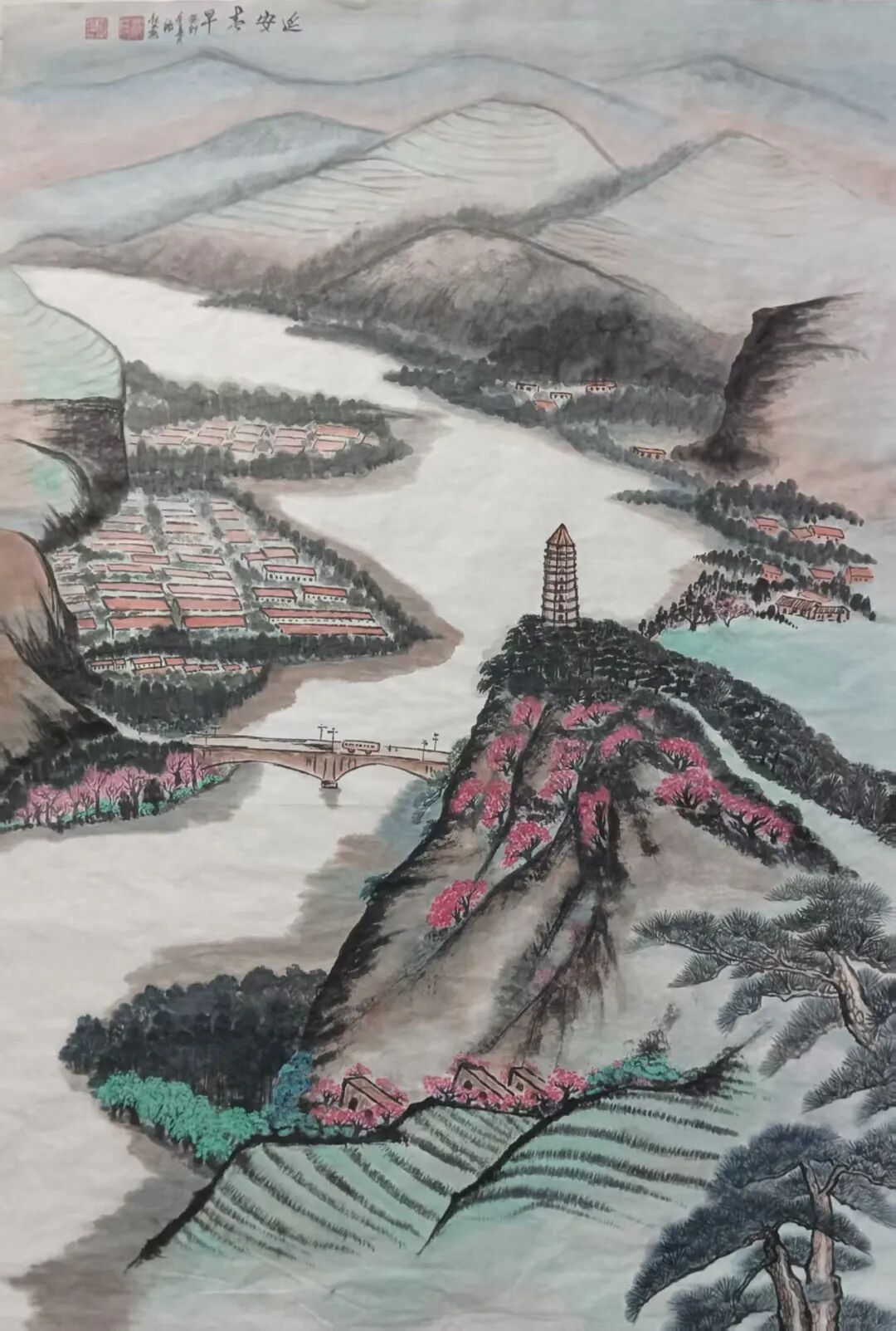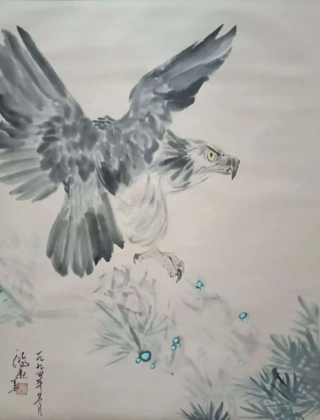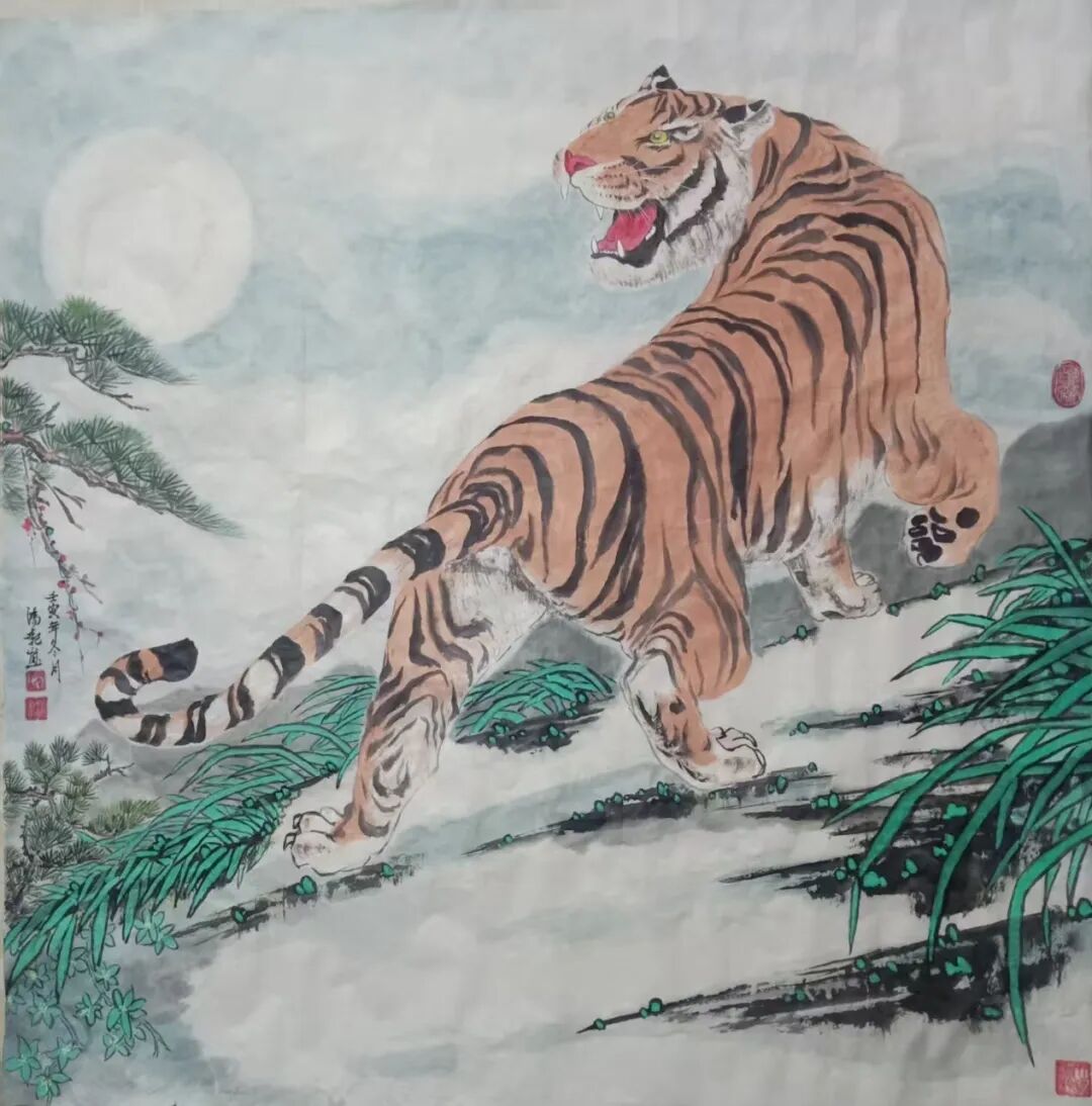 其画中之花,娇艳欲滴,仿佛能嗅其芬芳;画中之鸟,栩栩如生,似乎能闻其啼鸣。画家以心驭笔,以情入画,将自然之美,凝聚于尺幅之间,令人叹为观止。观其中国画之山水,犹入蓬莱仙境,令人心旷神怡,飘然欲仙。夫画者,以笔墨为舟,以纸砚为海,泛游于天地之间,捕捉山川之灵韵也。观其峰峦叠翠,如龙跃骏马,奔腾不息,气势磅礴。云雾缭绕其间,似白纱轻拂,又若仙境之门,引人遐想无限。松柏苍翠,掩映山石,犹如老翁抚琴,幽韵悠长,令人沉醉。 其书画之道,博采众长,自成一格,尤擅生宣纸上兼工代写,花鸟画栩栩如生,山水画意境悠远,人物画传神写照,皆令人叹为观止。