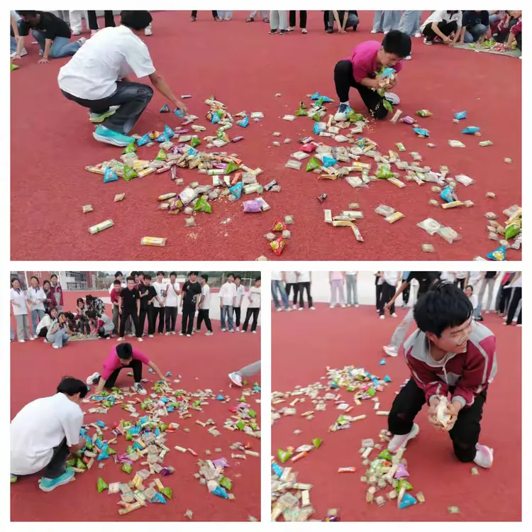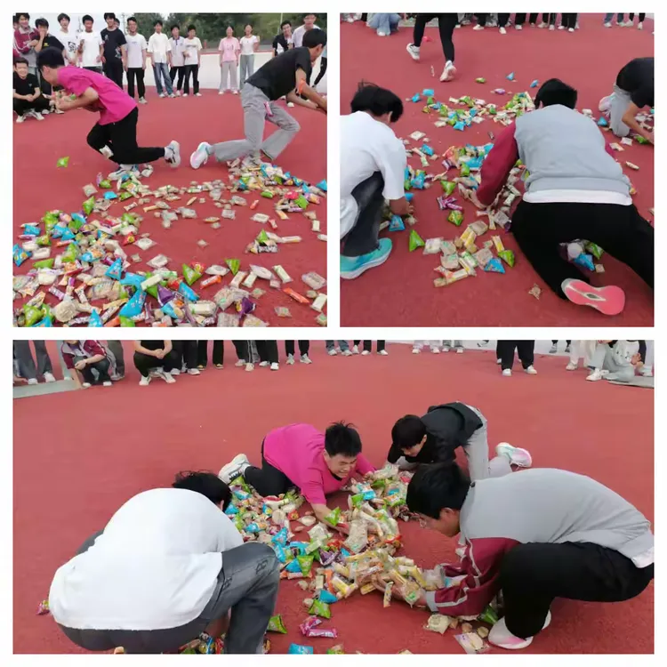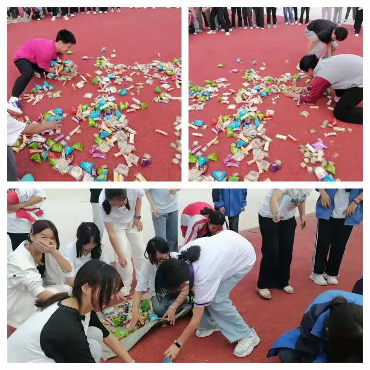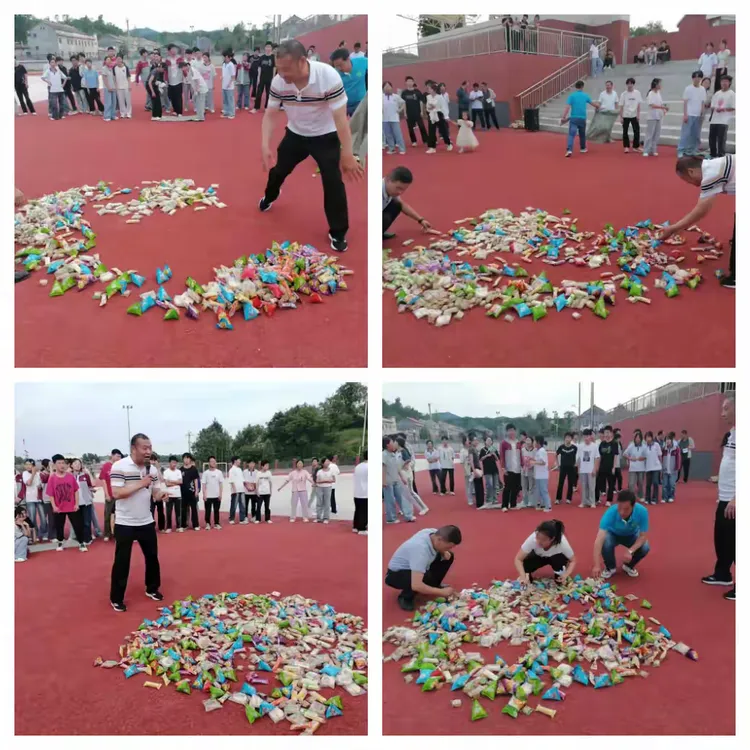 本次趣味运动会包括:跳绳、袋鼠跳、筷子夹乒乓球、背靠背夹球运球、滚雪球等五项团体趣味接力赛。最后,还进行了有趣好看、紧张刺激的分班级疯抢小食品比赛。