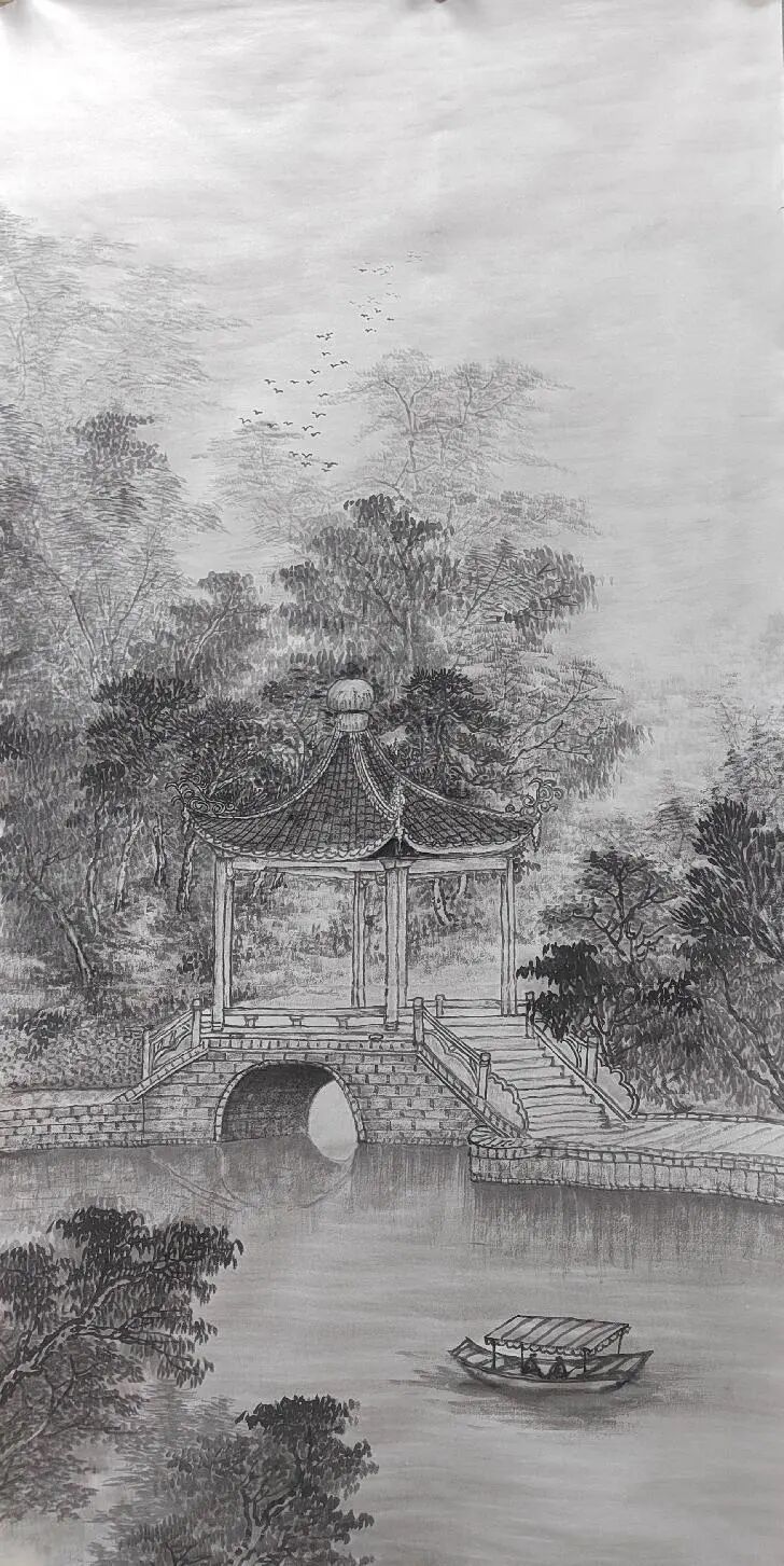 青年时期迁居苏州太仓,受 “四王” 艺术理念触动,金春梅系统研究其画作,领悟 “师古人” 与 “师造化” 的辩证关系,为创作奠定传统根基。她收藏故宫版 “四王” 画册,朝夕临习,掌握了严谨笔法与典雅画风,这些传统技法也成为其作品艺术价值的重要支撑,让作品在笔墨勾勒、构图布局上尽显传统韵味。