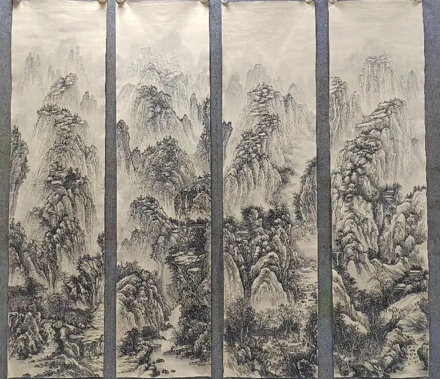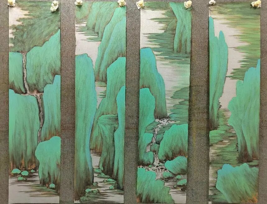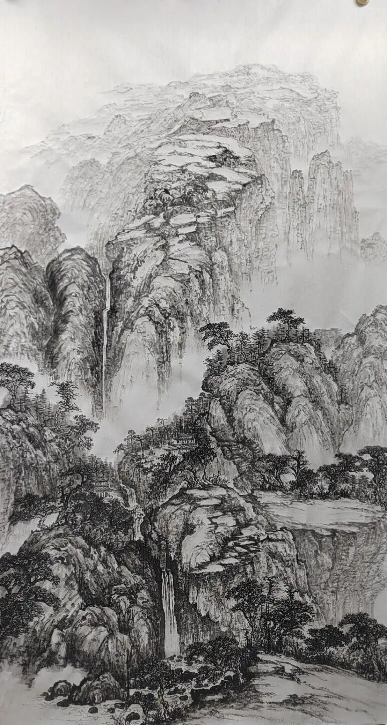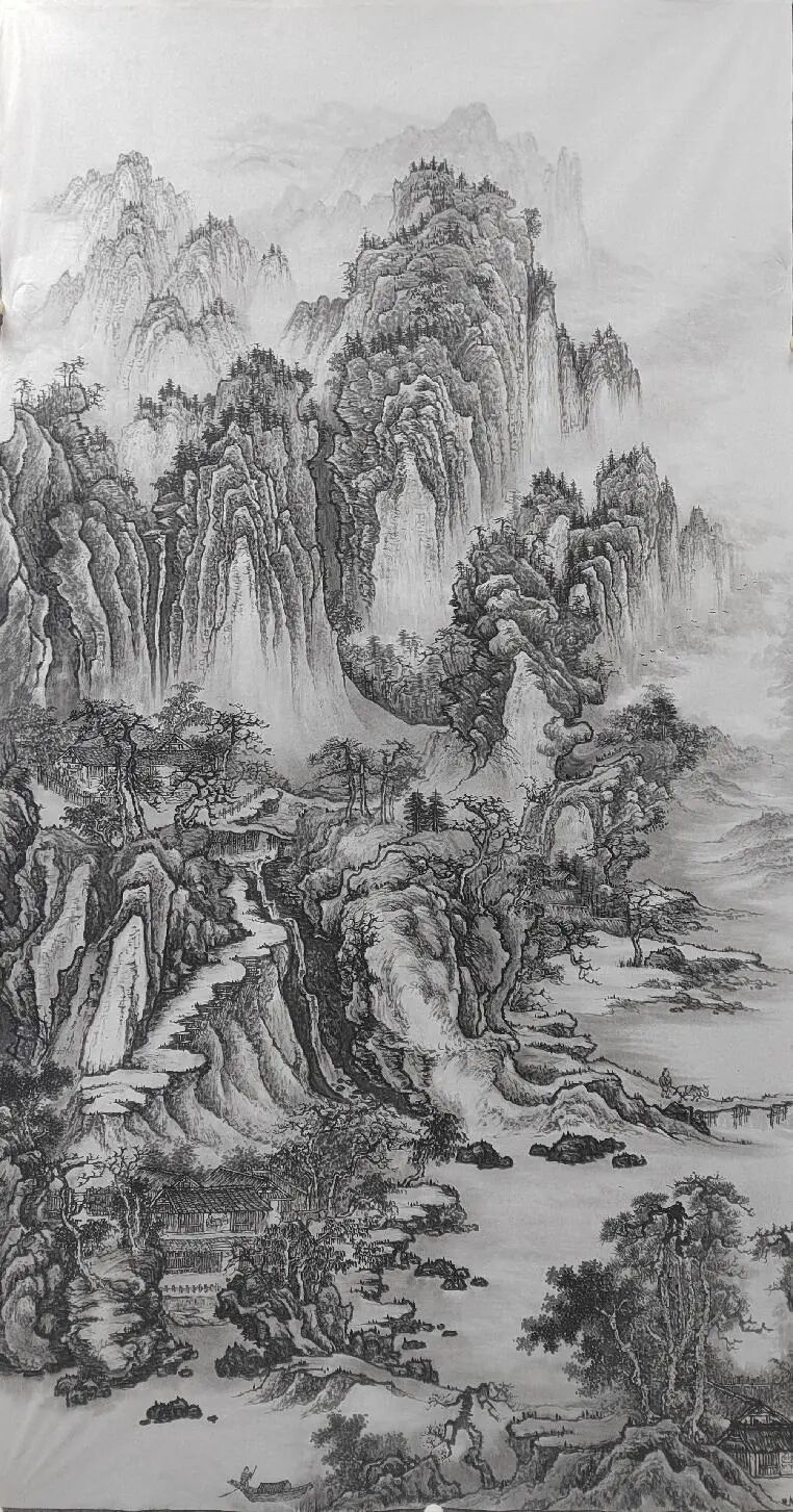 临习古作是金春梅探索创新的起点。她深入研究宋元古画,临习范宽《溪山行旅图》、黄公望《富春山居图》,构建对国画笔墨语言的理解。