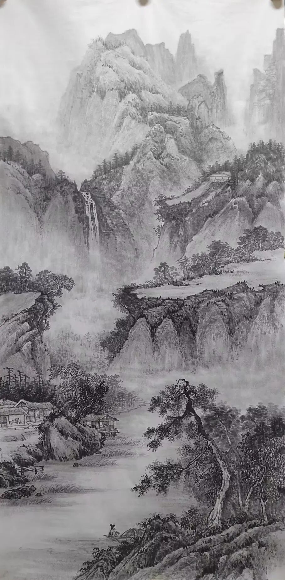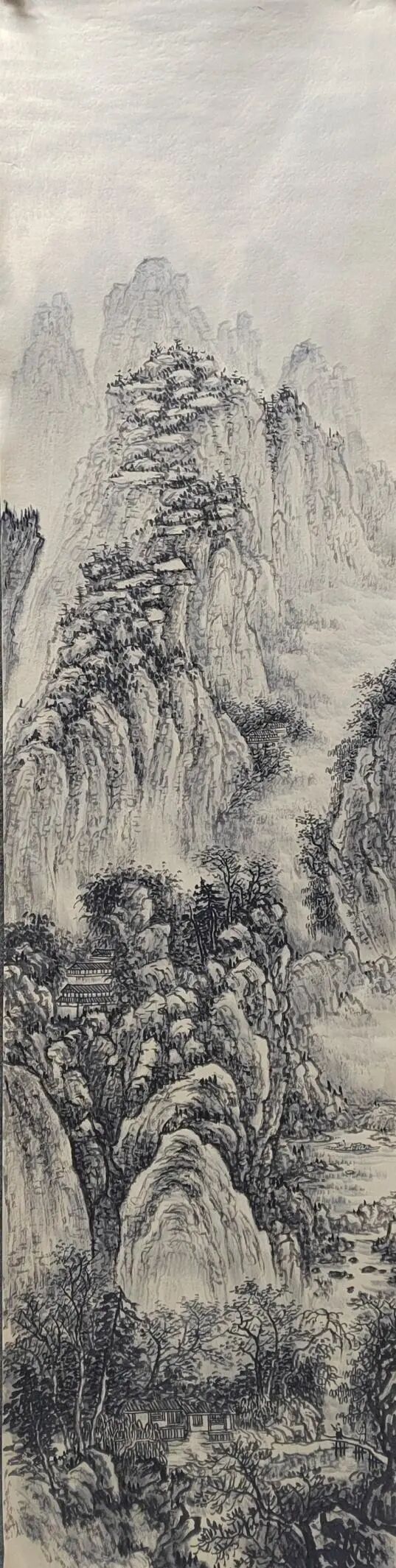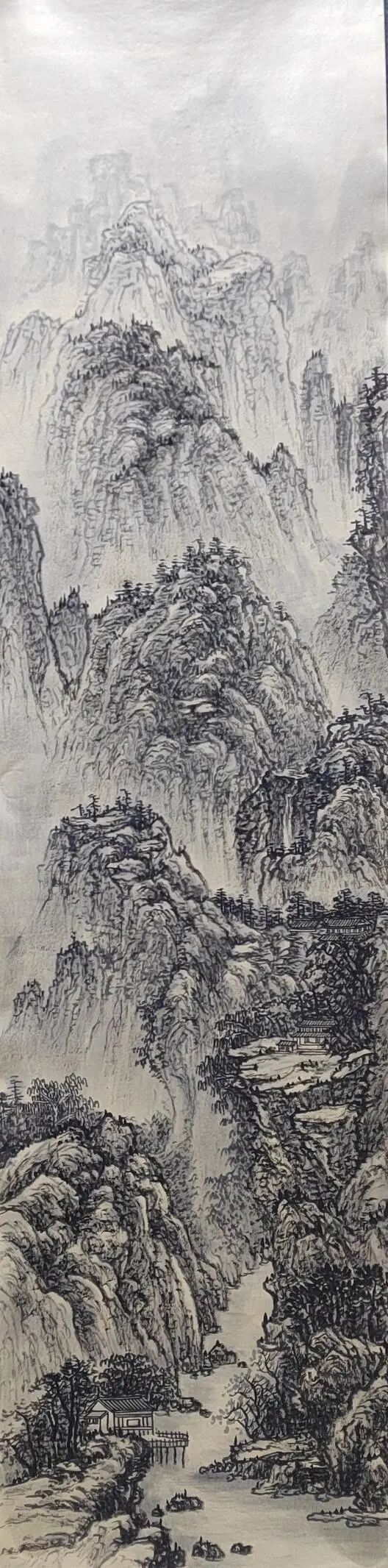 临习古作是金春梅探索创新的起点。她深入研究宋元古画,临习范宽《溪山行旅图》、黄公望《富春山居图》,构建对国画笔墨语言的理解。