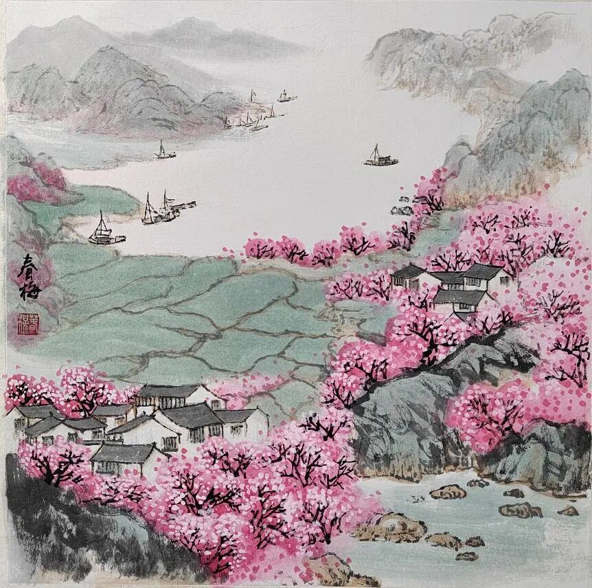 她,就是定居苏州太仓的职业画家金春梅。从川西沃土到江南水乡,从临习古作到独创风格,她的艺术生涯如同她笔下的山水画卷,既有传统笔墨的厚重积淀,又有现代审美的清新意趣,在传承与创新的交织中绽放出独特的光彩。