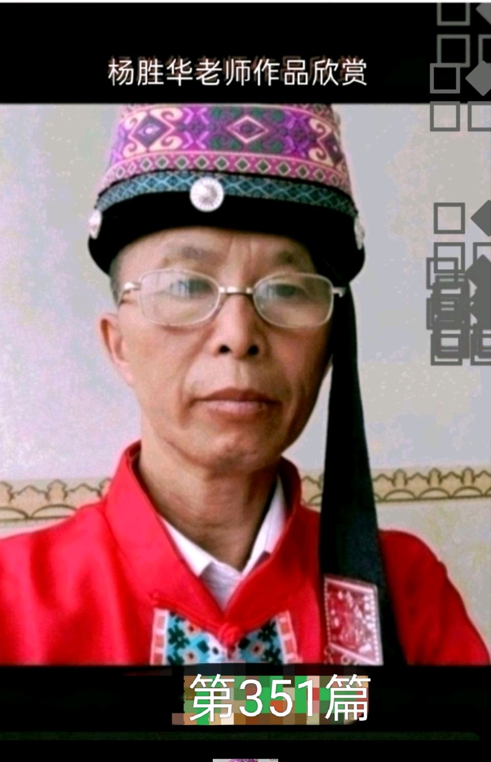 杨胜华,网名叫阳春白雪,夕阳金灿灿,苗族,贵州平塘人,生于上世纪六十年代初期,中共党员,退休教师,国家一级书法师。原系中国楹联学会会员,现系中国诗歌学会会员,中国散文学会会员,中国新时代诗人档案库认证诗人,中国乡村杂志和宁古塔作家杂志签约作家,都市头条认证编辑,贵州省黔南州作家协会、都匀市作家协会和平塘县作家协会会员。曾在各大文学网站、纸质及公众平台发布作品一千多篇(首),出版有个人诗歌专集《野草》和《高山流水》,即将出版个人散文集《生于天文小镇》敬请关注。