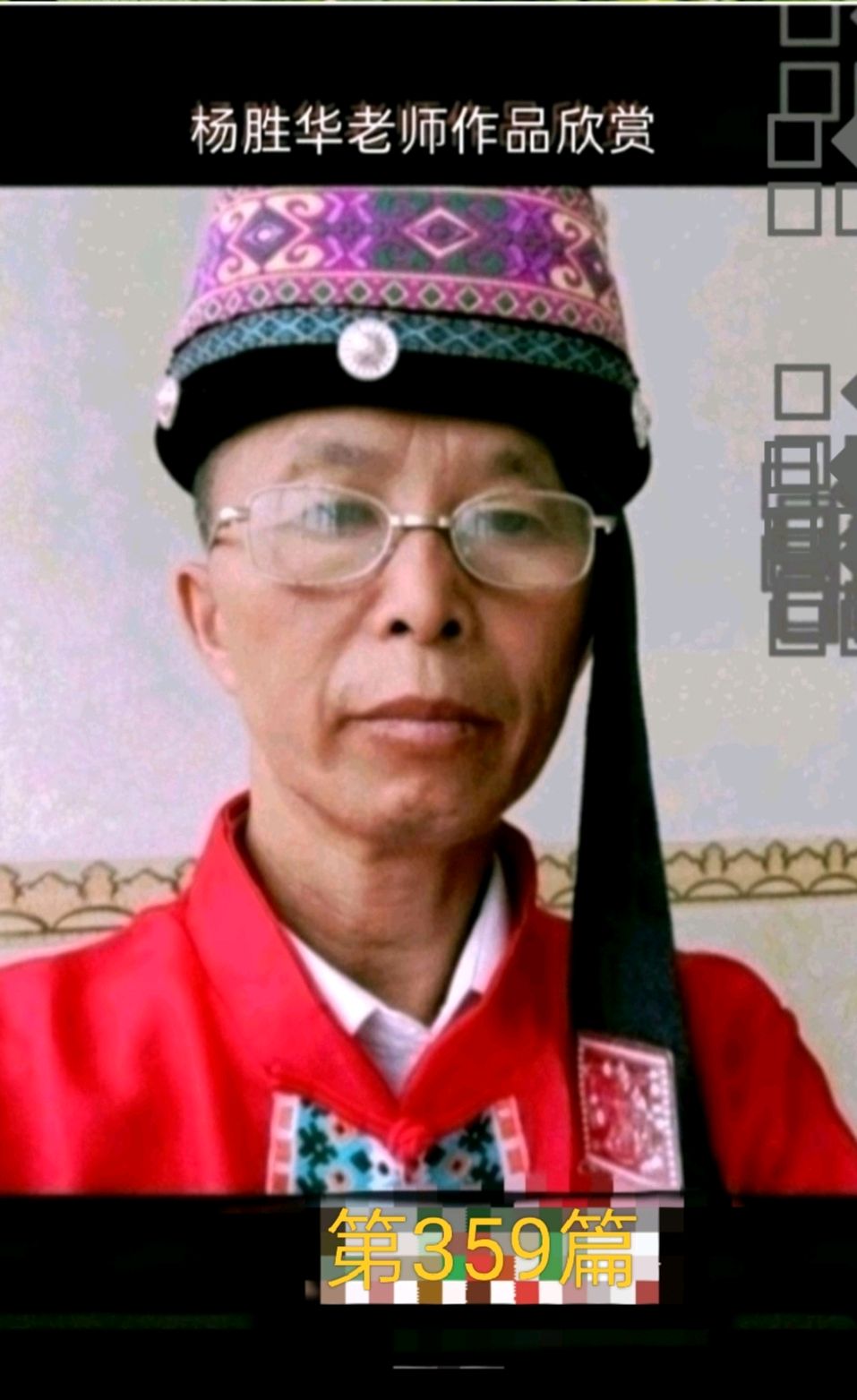 杨胜华,网名叫阳春白雪,雅名天眼居士,苗族,贵州平塘人,生于上世纪六十年代初期,中共党员,退休教师,国家一级书法师。原系中国楹联学会会员,现系中国诗歌学会会员,中国散文学会会员。