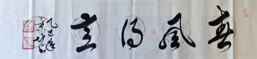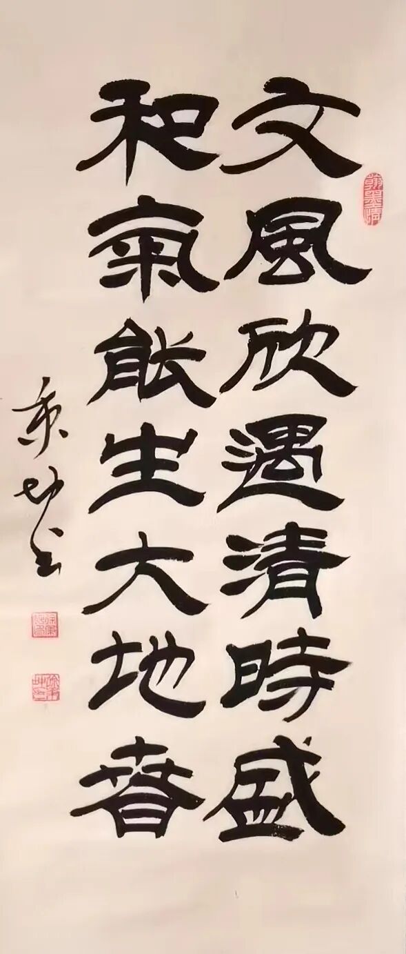 徐秉坤先生书法的魅力,更在于其作品所承载的磅礴精神气象与文化意蕴。无论鸿篇巨制还是案头小品,其字里行间始终透出一股刚健清朗的"正大气象"。这独特气格的锻造,源于他深厚的个人修为与广阔的文化视野以及担任"中欧文化形象大使"、"金砖国家文化传播大使"所肩负的使命,使其笔墨自然激荡着刚毅弘毅的时代力量。其书写内容多取经典诗文,精湛的书法技艺成为诠释永恒人文精神的绝佳载体,墨痕流淌间,中国哲学"天人合一"、"道法自然"的古老智慧跃然纸上。