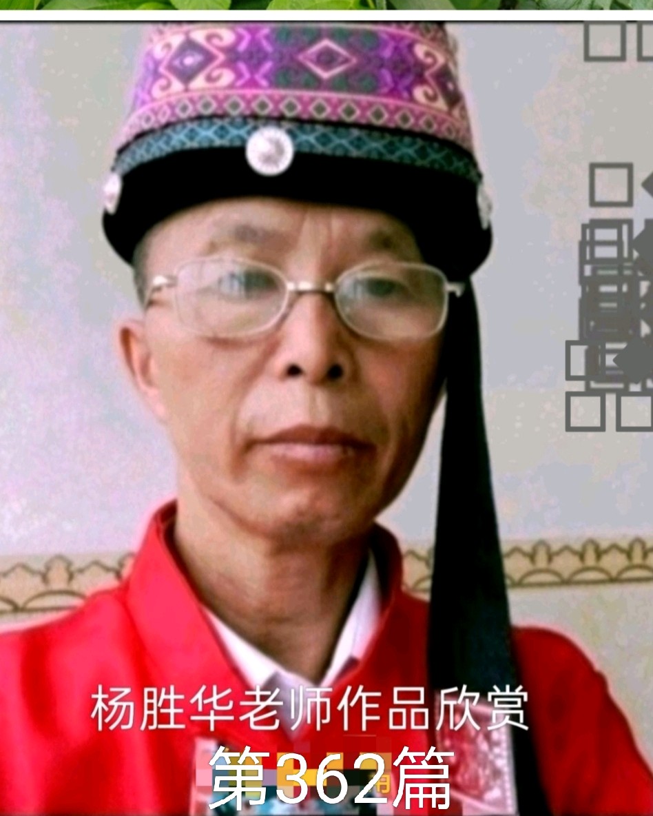 杨胜华,网名叫阳春白雪,雅名天眼居士,苗族,贵州平塘人,中共党员,退休教师,国家一级书法师。原系中国楹联学会会员,现系中国诗歌学会会员,中国散文学会会员。