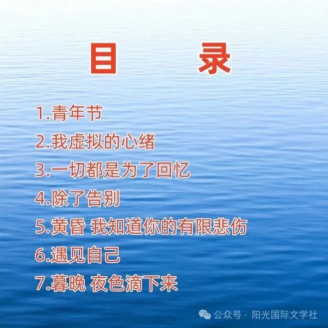 阳光国际文学社【阳光国际文学社团】是以《阳光文学》主要微刊为载体的专门征稿基地。创建【阳光文化】微刊纯文学作品,陶冶情操,养精蓄锐,锻造本领,在实现自我展示,自我欣赏的同时,把文学创作成果与大家分享,对中国文学的发展做出积极努力!442篇原创内容公众号