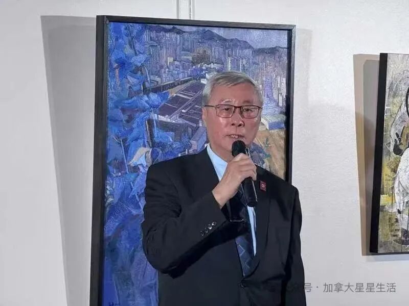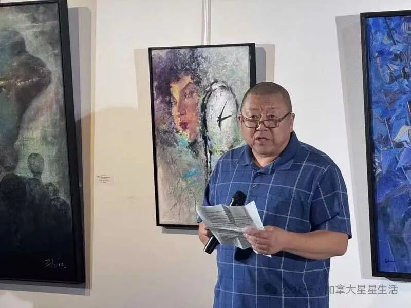 中国驻多伦多总领馆副总领事程洪波先生致辞。程洪波先生长期致力于推动中加文化交流,积极支持本地华人艺术发展“画展开幕恰逢七七事变纪念日,意义尤为深远。历史在当下回响,艺术家的情怀承载着沉重而庄严的时代使命。”