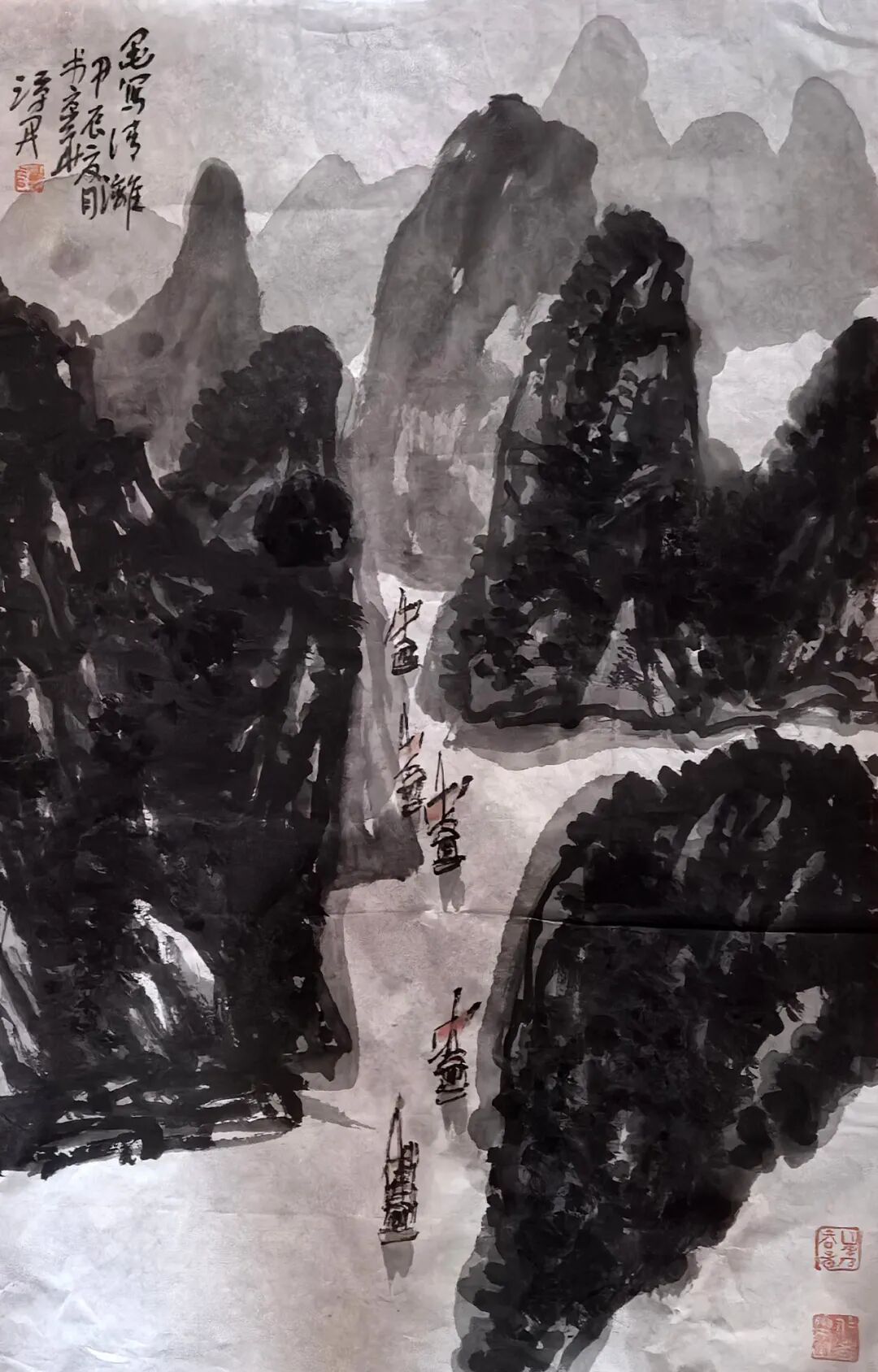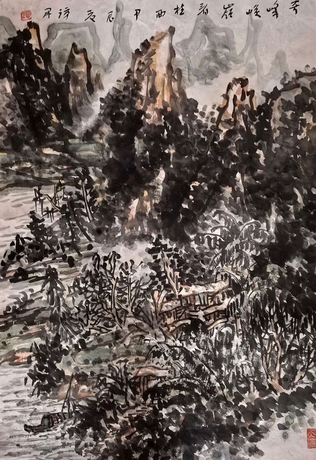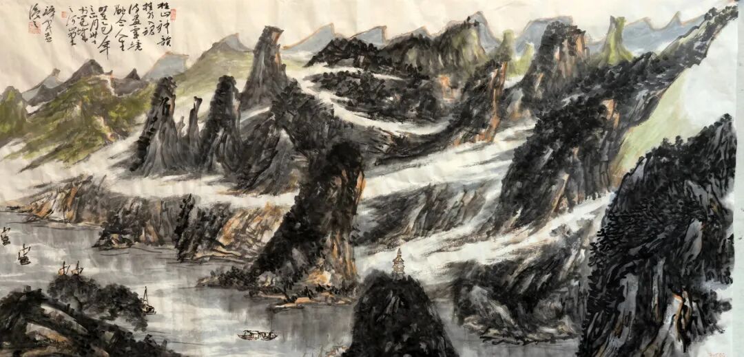 其腕底风云,既深植于笔墨丹青之沃壤,复能吐纳八面新潮,以铁笔生花,铸就时代气象。作品巍巍乎如青铜之鼎,镌刻民族精魂;浩浩乎若江海奔涌,激荡时代气韵。此非仅为技艺之精绝,更在于以丹青为舟楫,传薪火于未央,使古老智慧焕然新生,令华夏气度磅礴寰宇。
