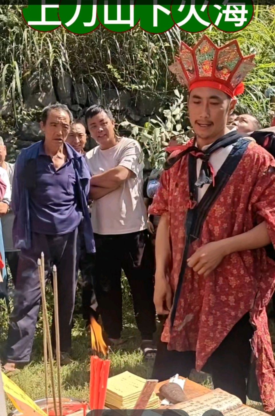 听人说上刀山下火海表演十分精彩。经过半个多小时的时间,我终于来到了表演地点。有一些家人正好在吃饭,可表演节目的那帮表演者,正在敲锣打鼓不停歇。我找到了秦先生了解,他回复我说等大家吃了午饭,才正式进行上刀山下火海表演。我问了秦大师一遍:搞上刀山下火海有何意义说来听听有何高见?