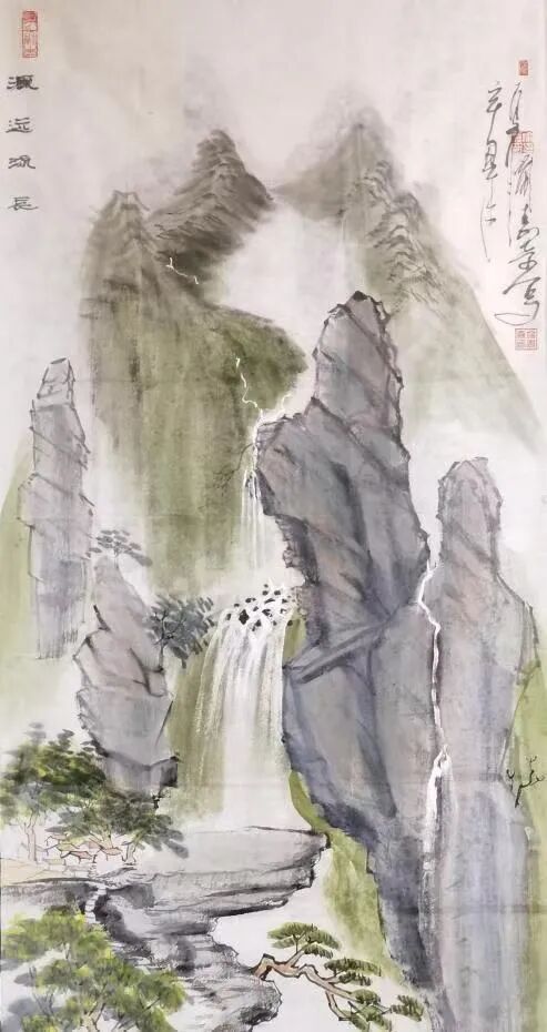 其腕底风云,既深植于笔墨丹青之沃壤,复能吐纳八面新潮,以铁笔生花,铸就时代气象。作品巍巍乎如青铜之鼎,镌刻民族精魂;浩浩乎若江海奔涌,激荡时代气韵。此非仅为技艺之精绝,更在于以丹青为舟楫,传薪火于未央,使古老智慧焕然新生,令华夏气度磅礴寰宇。