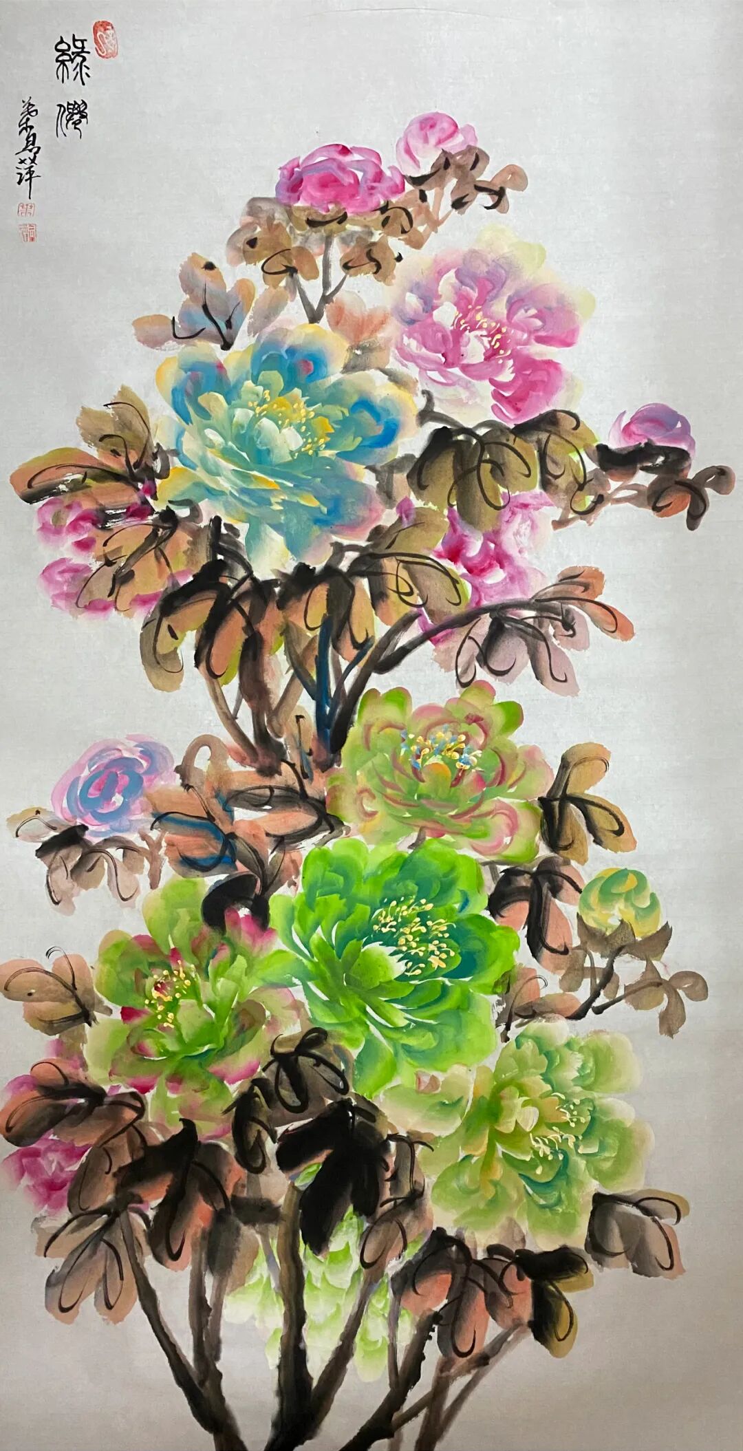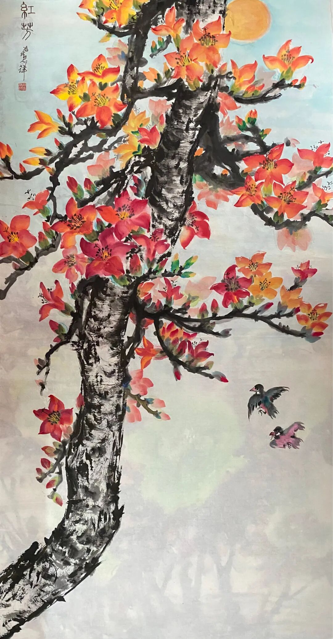 其腕底风云,既深植于笔墨丹青之沃壤,复能吐纳八面新潮,以铁笔生花,铸就时代气象。作品巍巍乎如青铜之鼎,镌刻民族精魂;浩浩乎若江海奔涌,激荡时代气韵。此非仅为技艺之精绝,更在于以丹青为舟楫,传薪火于未央,使古老智慧焕然新生,令华夏气度磅礴寰宇。