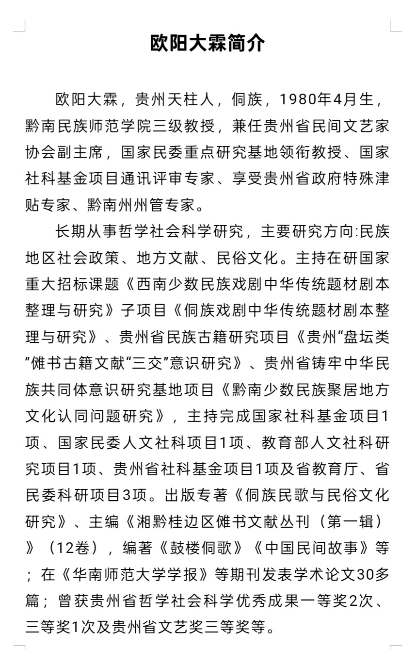 是哪阵微风把你们吹到了这小小的山村里?辛苦了你们,请快快进到家里休息!主人叫李逢仁,把茶水泡好后马上端到客人手里。我叫欧阳大霖,是从事非遗文化研究的人,我来自都匀,今天早晨走进你家里是来了解一下一些有关非遗文化傩戏的事情,询问傩戏在民间表演有什么意义?