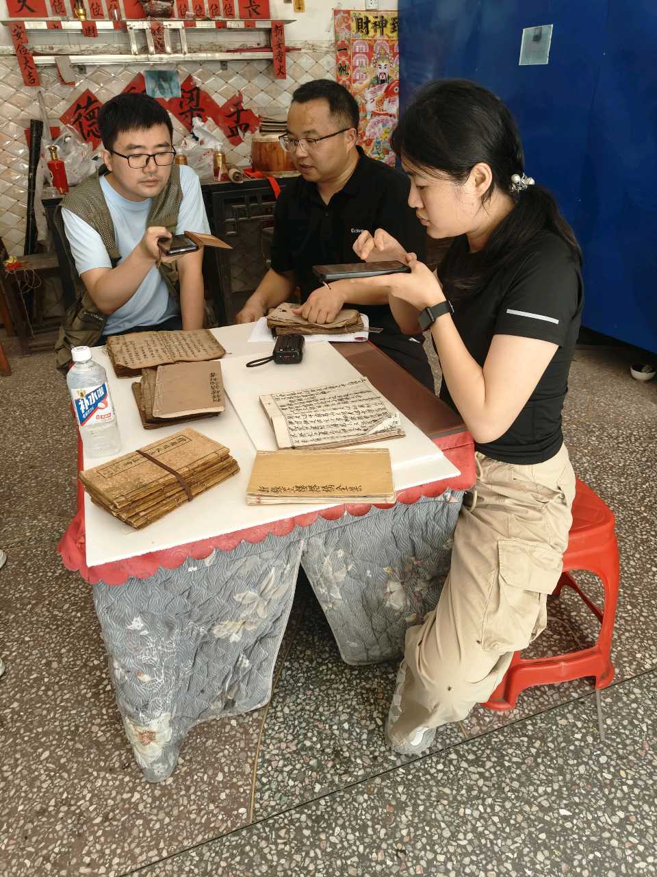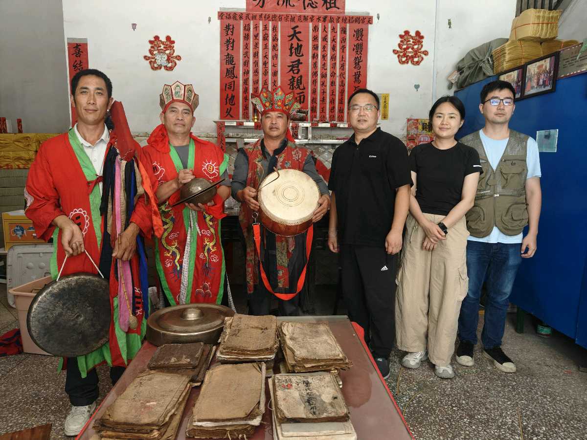 能不能把你们的傩戏书籍拿出来看一下行不行?专家欧阳大霖又问:让我们拍照回去研究一下里面的有关内容是否完整?掌坛师李逢仁马上回应:行!行!行!现在我去要来就摆在小桌子这里,你们可以拍照以后再去具体分析,了解一下里面的东西到底丰富不丰富完整不完整。随后,三个客人就翻阅一堆那些傩戏书籍,有时遇到什么问题就马上提问,直到弄清才放心一些。