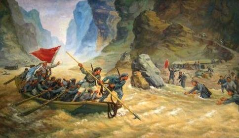 大渡涛惊气势雄,枪林弹雨战旗红。