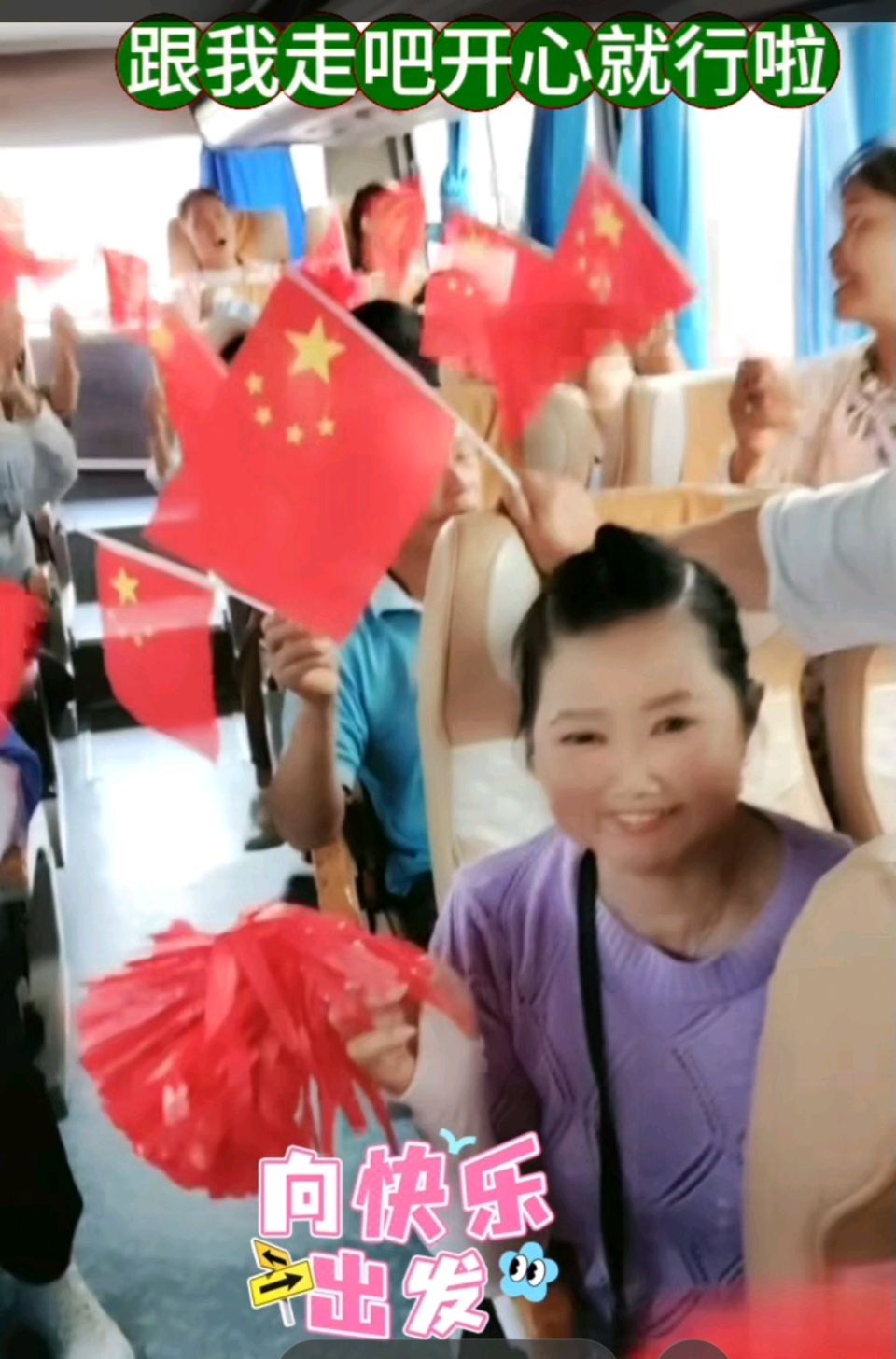 各位朋友,这是旅游车上的山歌声让人乐悠悠。请看大巴车里头,全是一些老奶奶与老头,他们来自于克度,出行去平湖旅游。大巴车上的老年人年龄大概在六十岁左古,有些老人平常在家里做活路;有些老人在家把孙子来照顾,有些老人因身体健康虚弱把家守一守。