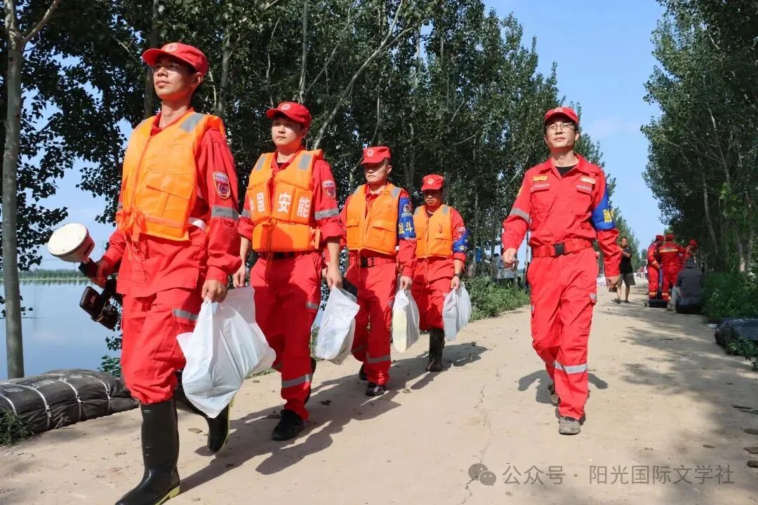 齐腰深的水中为每一户灾民拴紧吉祥安康