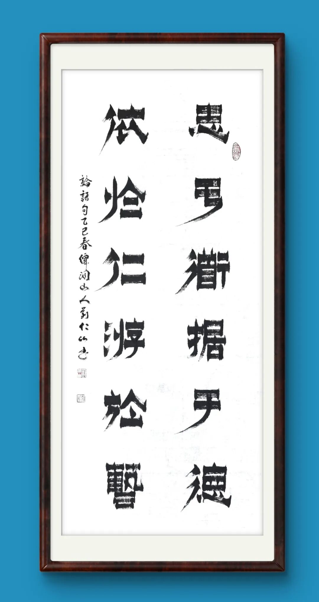 刘仁山先生各种书体多有精研,尤其以隶书与行草写得丰姿多神,拥有可以装饰万家屏障的审美宽度,又有可以收藏作为和璧隋珠的珍贵价值。这就是他的书法为什么在大众审美层面有影响力,在文化交流与艺术品收藏市场大著其名的重要原因。究其根本,就是写得好。书法的文化表现到位,惊艳的艺术,总有非凡的功勋。不妨走进他的书法世界,一览隶书的左掠右挑,还有行草的类万物之象!