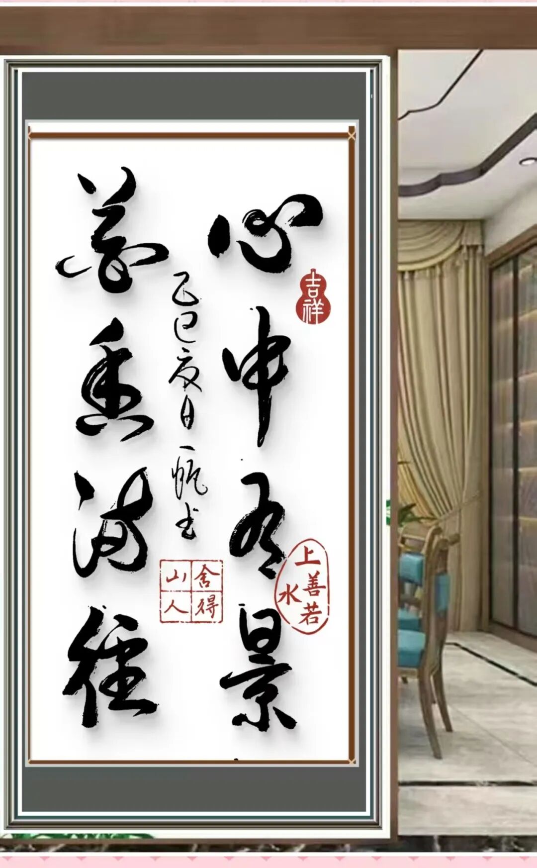 此外,林进扳先生的书法作品还具有极强的文化传播力和装饰性。他的作品既适合在展览中观赏,也适合作为装饰品悬挂于厅堂之中。无论是书法爱好者,还是普通观众,都能从他的作品中感受到书法艺术的魅力。意在笔先,然后作字,林先生的创作始终秉持"以文化人"的理念,将传统美学基因注入现代生活空间,不仅具有很高的艺术价值,还具有很强的实用价值,是人们喜闻乐见的书法佳品。在市场上也备受关注,无论是观赏还是收藏,都具有突出的价值。