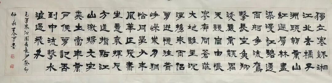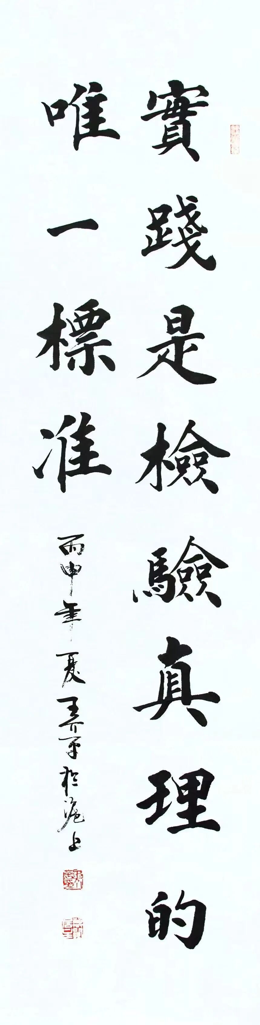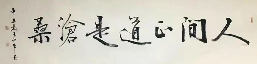 看他的楷书,足见功底深厚。正如宋人欧阳修于《欧阳文忠公文集》中所言:“善书者,必先楷法,渐而至于行草,亦不离乎楷正。”王介平先生写楷,有欧韵之风,亦有柳骨之气,点画间,是谓笔笔精到不逾规,端正不苟,典雅秀逸。常人有品性之分,书有工拙之别,而今观先生之作,便就是其书严正之气有溢于楷墨,不骄不躁,耐性为之,所谓品高,韵自胜焉!再看他的行书,写来也是心到笔到,意在笔先!提笔欲行时,如有物以拒之,则竭力而与之争,故观其行书,笔墨无一不是能于筋骨中藏肉莹、于缭绕中显酣畅。大笔挥毫,自然天成,既有魏晋书卷之美,又有翰林贤才之志,至若真气氧足,字字复尽精神!