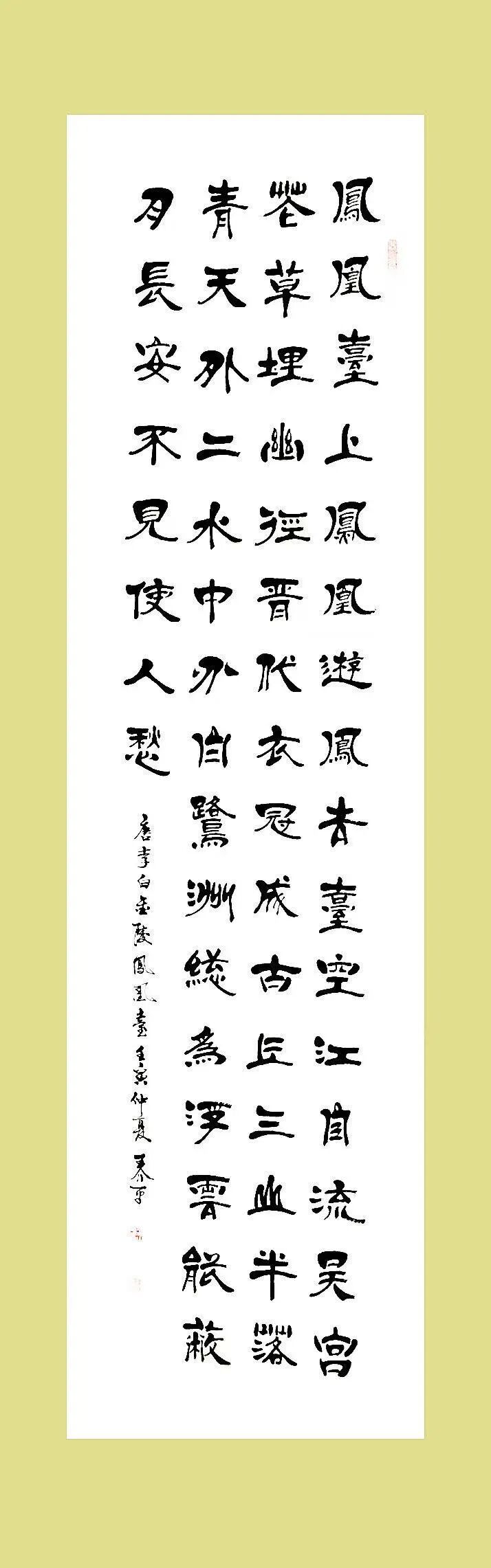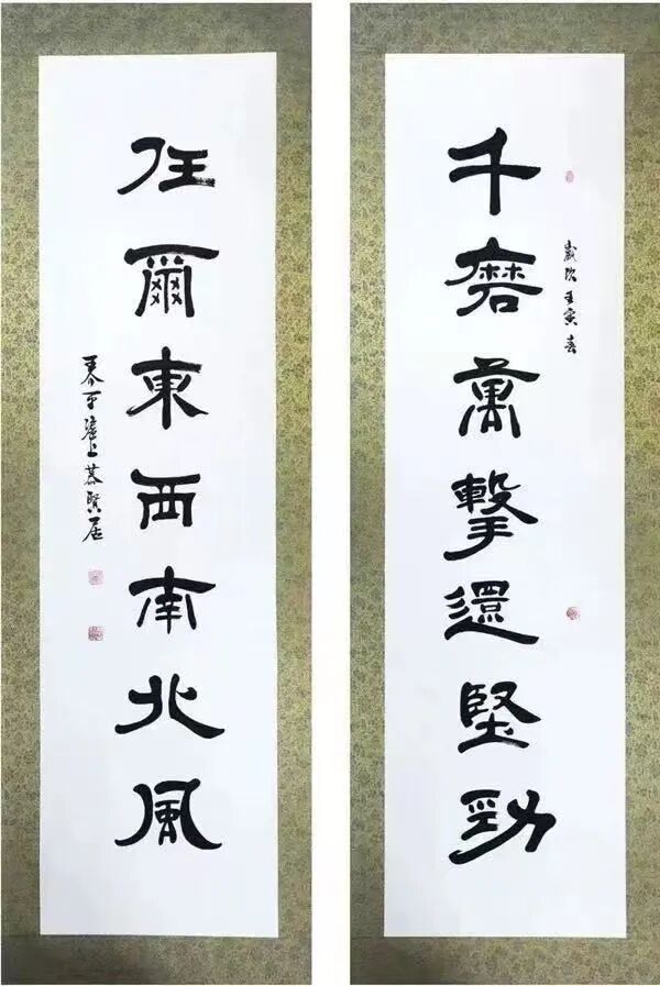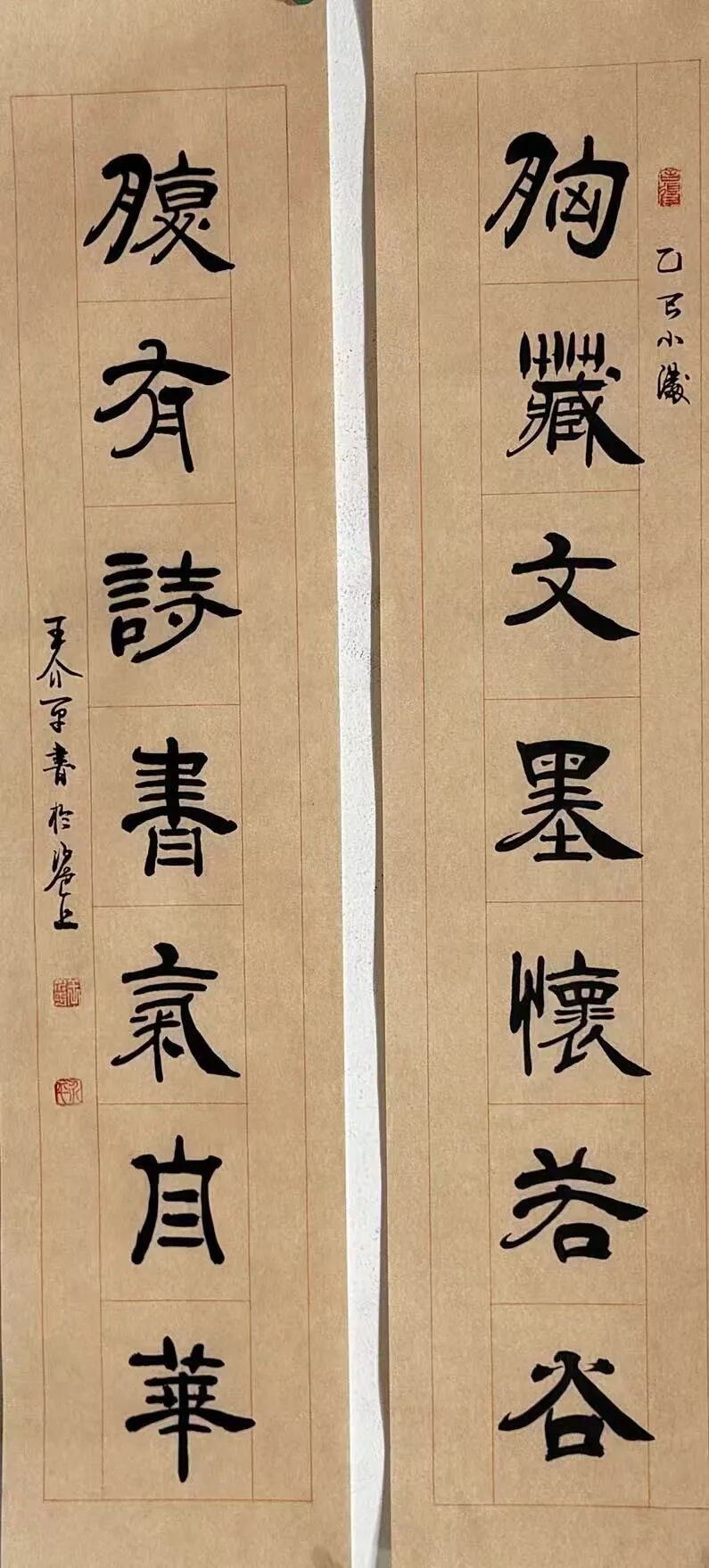 汉隶风骨始终是王介平先生书艺求索的精神原乡。其能卓立书坛,自成一派高格,也实源于对汉隶气象的穷源竟委。在当今书坛纷纭变幻之际,先生却始终能如砥柱中流般,恪守汉碑为宗,并将碑法作舟楫,溯游其间,抉奥探微,终将汉隶的朴茂真气熔铸为自家血脉。所以笔下汉隶,皆是不趋时妍而古意自涌,不事雕琢而金石铿然。笔笔行运,沉稳精古,无轻浮之滑,无散漫之风,诚可谓结体宽绰中具足蚕头燕尾,行间疏朗中不失体势严谨也!欣赏如此汉隶,直令观者如瞻汉阙仪典,可以将殿上冠帽襜褕的人臣气象,尽在楮墨碑韵间徐徐展开。