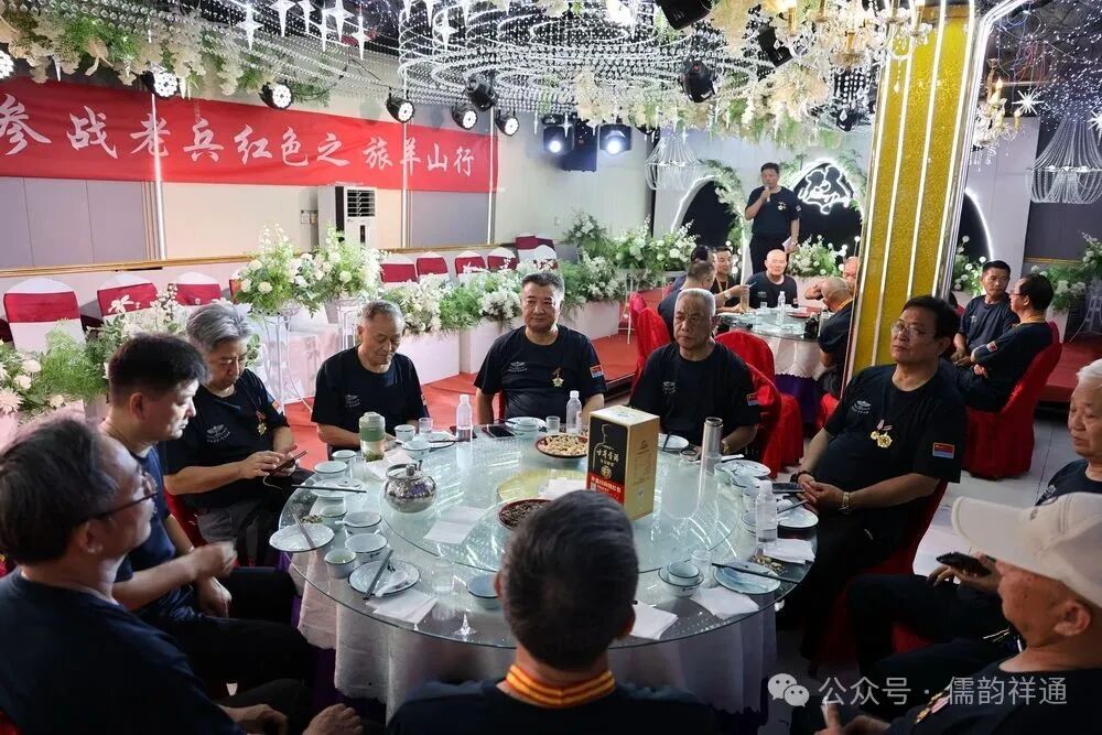 参观活动结束后,老兵们乘坐大巴车来到午宴现场,他们将在这里继续畅叙战友情。午宴由老兵张瑞祥主持,他热情洋溢的话语拉开了午宴的序幕。