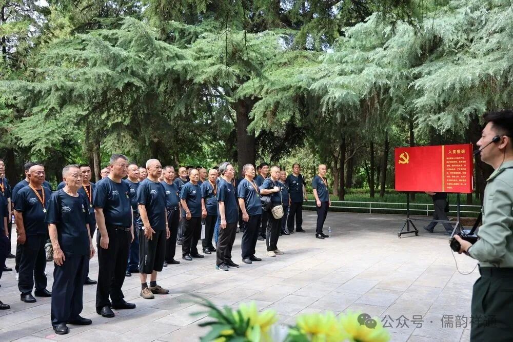 在烈士公墓,一场庄严的爱国主义活动正式举行。老兵们整齐列队,由四名老兵代表龙儒秋、林存弟、孙向军、宋学贤向烈士敬献花篮,花篮上的缎带寄托着他们对烈士的无限哀思。全体战友们肃立默哀,鞠躬致礼,表达着最崇高的敬意。原空七军雷达二十五团指挥连连长宋学贤同志代表老兵们讲话,他的话语朴实而真挚,回顾了那段难忘的战斗岁月,缅怀了牺牲的战友,也激励着在场的每一位老兵不忘初心、牢记使命。之后,老兵张瑞祥领誓,全体老兵举起右拳,庄严地重温军人誓词,那铿锵有力的誓言回荡在烈士公墓上空,彰显着他们虽已退役但军人本色不减的坚定信念。