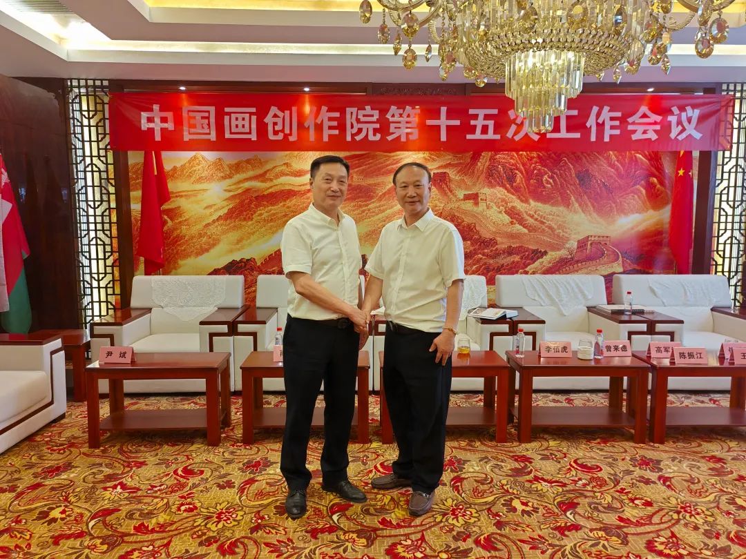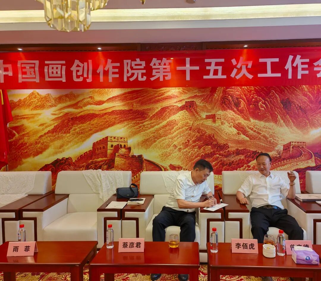 2025年8月2日上午,中国画创作院第十五次工作会议在北京召开。中国画创作院院长李佰虎主持会议,主题思想“不忘初心,牢记使命”,围绕纪念中国人民抗日战争胜利80周年主题创作展开了讨论。中国画创作院党委书记、副院长傅振明发表讲话。