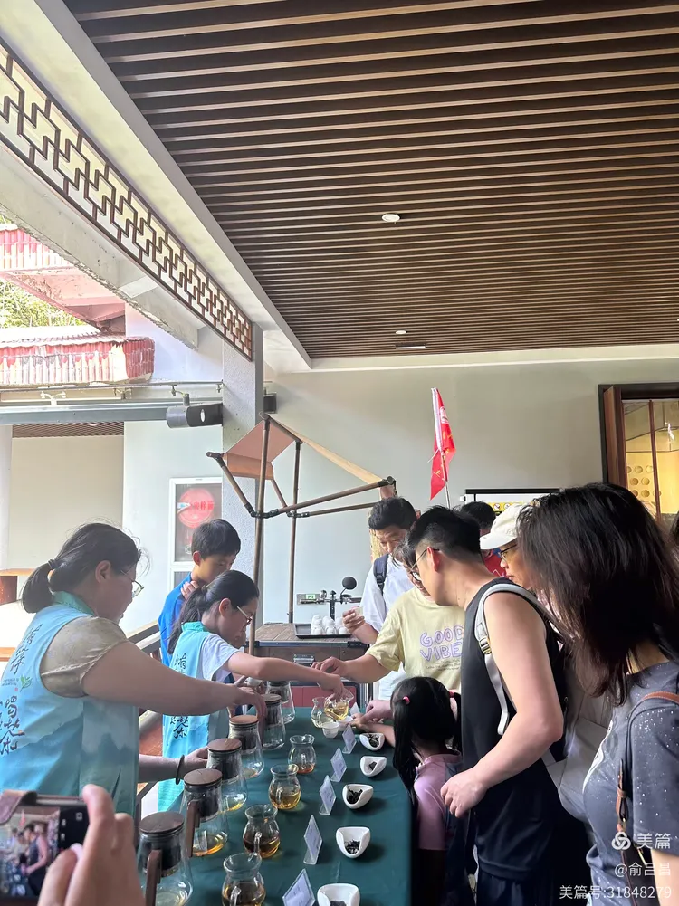 领队的刘队长是位精神矍铄的青年者,他正调试着手机里的音乐,里面传来清朗的诵读声:“《茶经》有云茶之为饮,发乎神农氏,而杭州茶事可追溯至唐代…”这是队员们在预热当日的解说词。一排车队,沿着龙井路蜿蜒而下,途经双峰插云时,但见晨雾缭绕茶山,恍若陆羽笔下“其树如瓜芦,叶如栀子”的意境。
