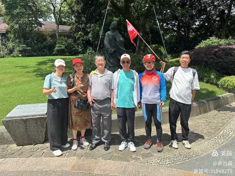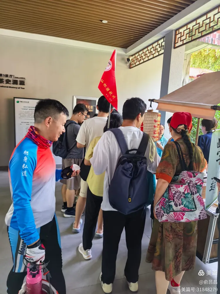 未伏初临,暑气仍酣。晨曦微透时,杭州茶叶博物馆前已聚起一队飒爽身影。这群巜杭州风景名胜词典》的骑行者们,以车轮丈量西湖岸线,汗洒青衫,笑语惊飞林鸟。吴仙松笔下的“茶都风骨”,此刻正随他们的足迹从书页跃入山水。身着统一的天青色骑行服,车头插着“走读杭州”的小旗,正是吴仙松先生《杭州风景名胜词典》的志愿宣传团队。