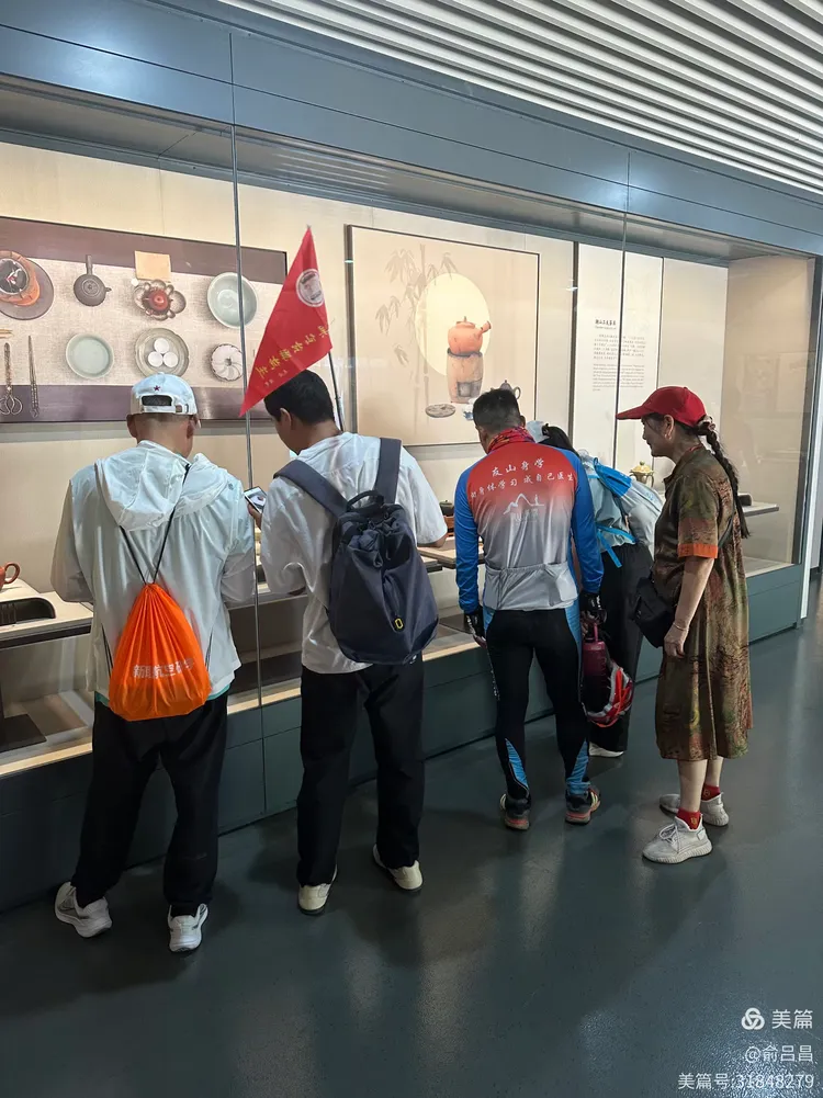 走出博物馆,太阳高照,骑行服上的反光条在阳光下星星点点。归程中,不知谁起了头,众人齐声诵起《茶经》:“茶者,南方之嘉木也…”声浪惊动了月光下的茶田,沙沙作响的叶片仿佛在与千年茶魂共鸣。此刻,车轮碾过的不仅是西湖的柏油路,更是一部流动的茶文化诗一一从神农尝百草到丝绸之路上的茶驼铃响,从法门寺地宫的鎏金银茶碾到C20峰会上的“西湖茶宴”,一片东方树叶的故事,正随着这群骑行者的轨迹,在杭城的秋风中徐徐展开…。