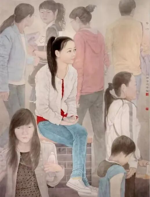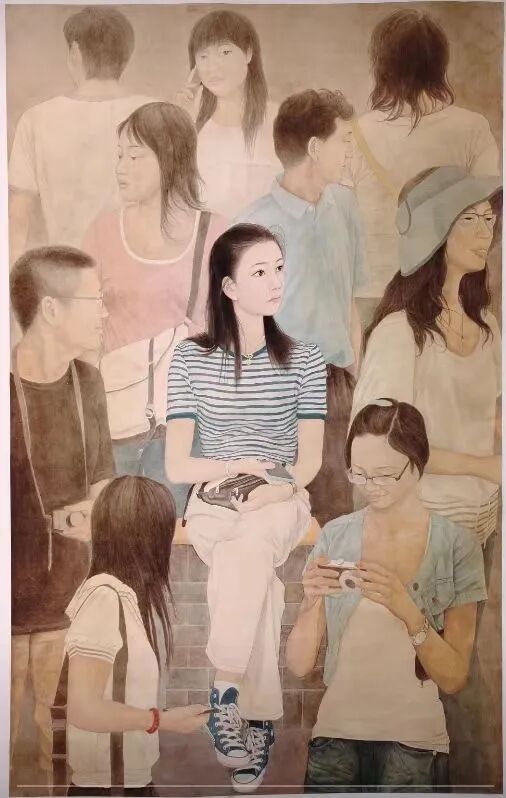 作为一名现实主义画家,姚延怀先生可以说是有着相当娴熟的写实功底,但他又区别于一般的工笔画家,原因在于其画作中是蕴含了丰富的人文情感与写生理解。特别是在他的一些工笔人物画作中,对女性人物的描绘往往都是十分细腻的,以流畅的线条勾勒形神,用淡雅的平涂色彩展现气韵,没有过分的渲染变化,只是遵照了随类赋彩的方式,去自然而然地呈现画面的肌理美感。当然,你可以认为这是纯粹的现实主义画作,但在我看来,这更像是姚延怀先生对生活深刻体悟后的艺术升华。只不过在这一过程中,姚延怀先生是赋予了作品更多的艺术情感与内涵。