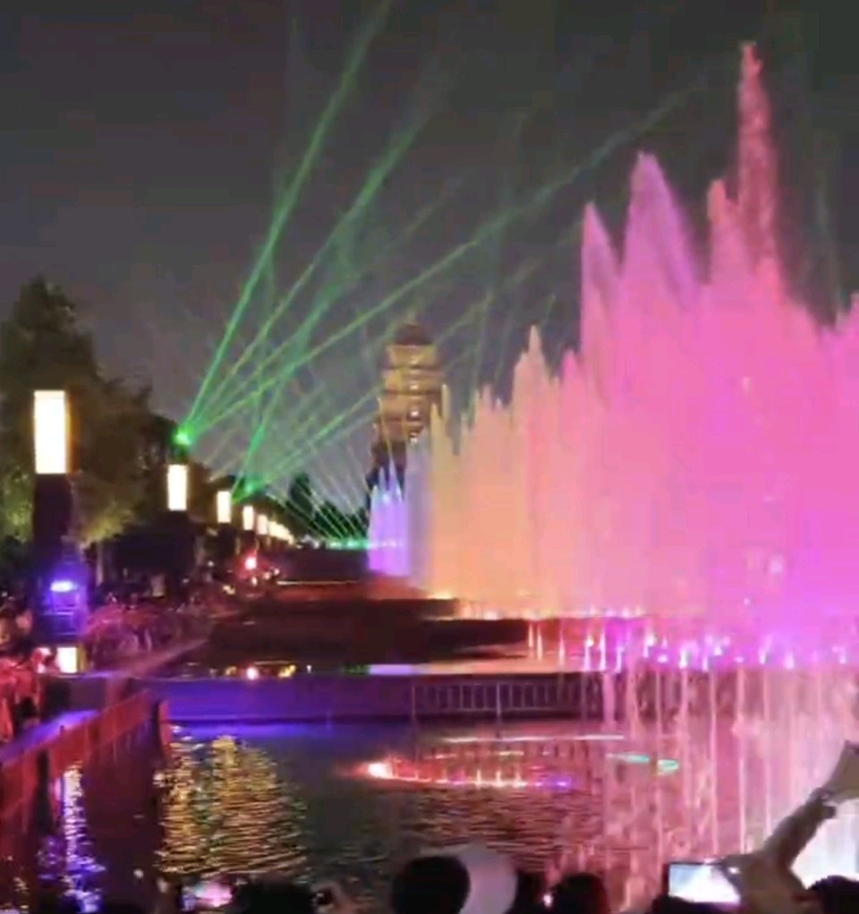 喷泉绽彩韶音绕,画栋雕梁古意浮。