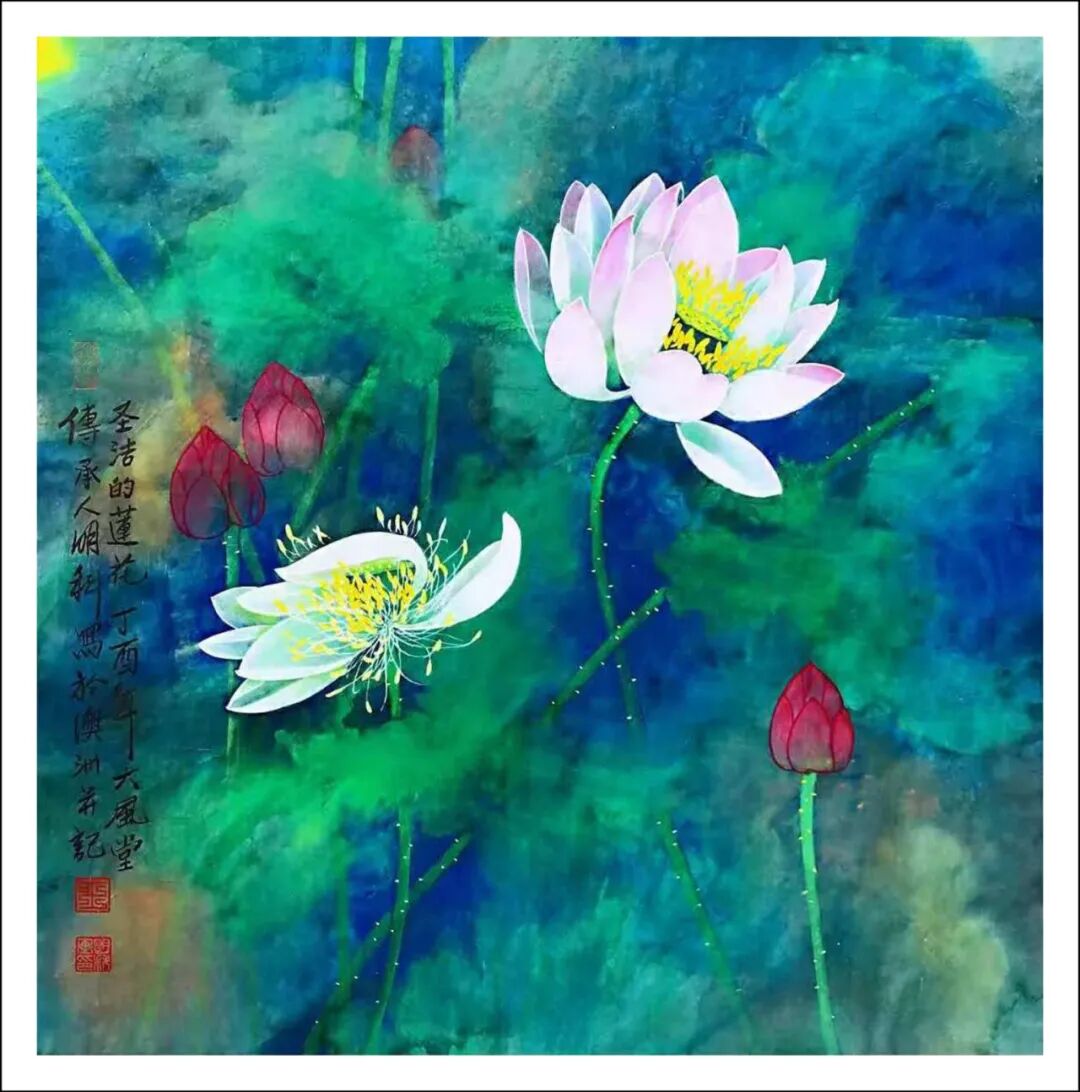 一池清荷生妙境,澹澹水影化烟霏。王明科先生的作品从上世纪七十代,便大放光彩,从北京中国美术馆的个展盛况,到悉尼文化中心的雅集清谈,艺术创作带着荷香墨韵,作成千禧之莲,点染苍茫禅意。画家六十载砚田耕耘,已经成为在全球化语境下弘扬传统文化的艺术使者,纪念馆、国家馆藏的高品画卷,以及在国际艺术空间风生水起的佳作,一并构建起跨国界、跨时空、跨文化的横梁,让全世界的人们可以在“接天莲叶无穷碧”的艺术氛围里,真切感受到来自中国的审美奇观!