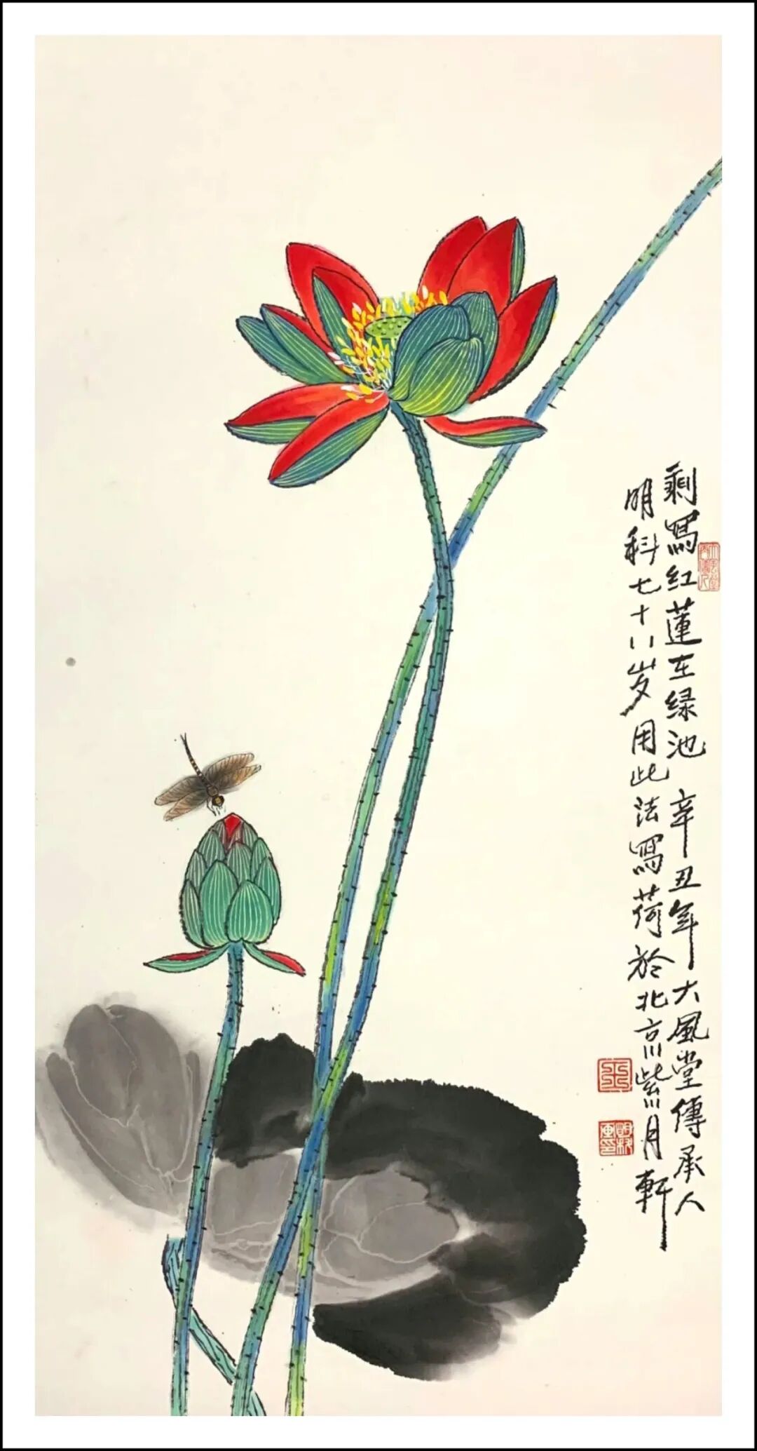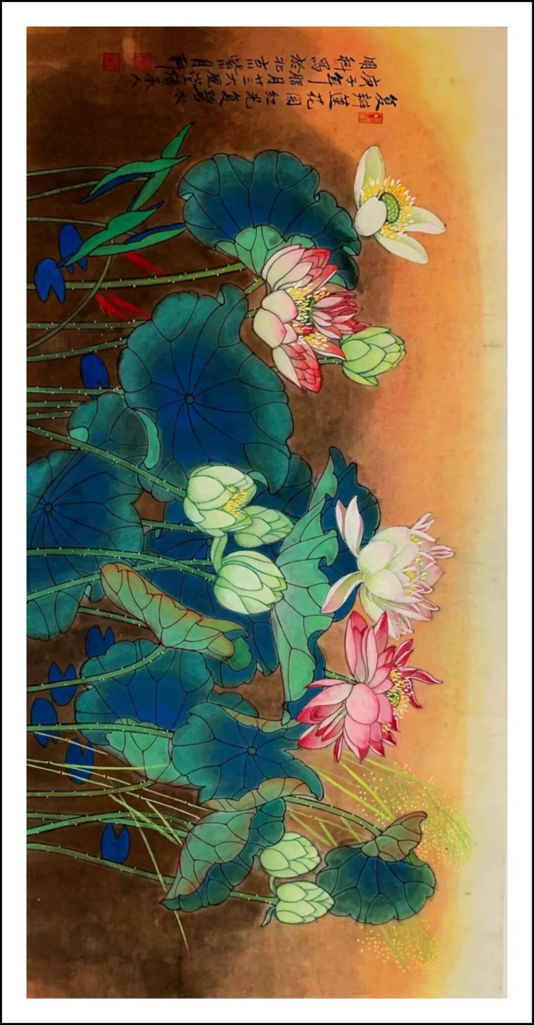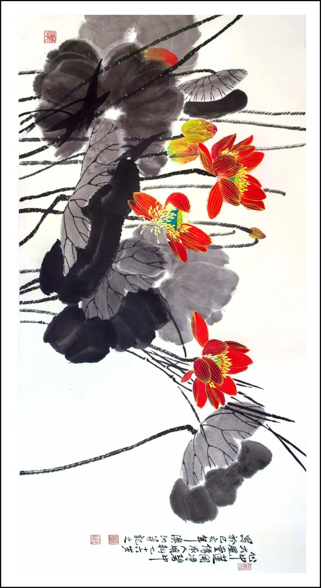 复瓣莲花 生宣工写彩墨 136x68cm 2020年 王明科