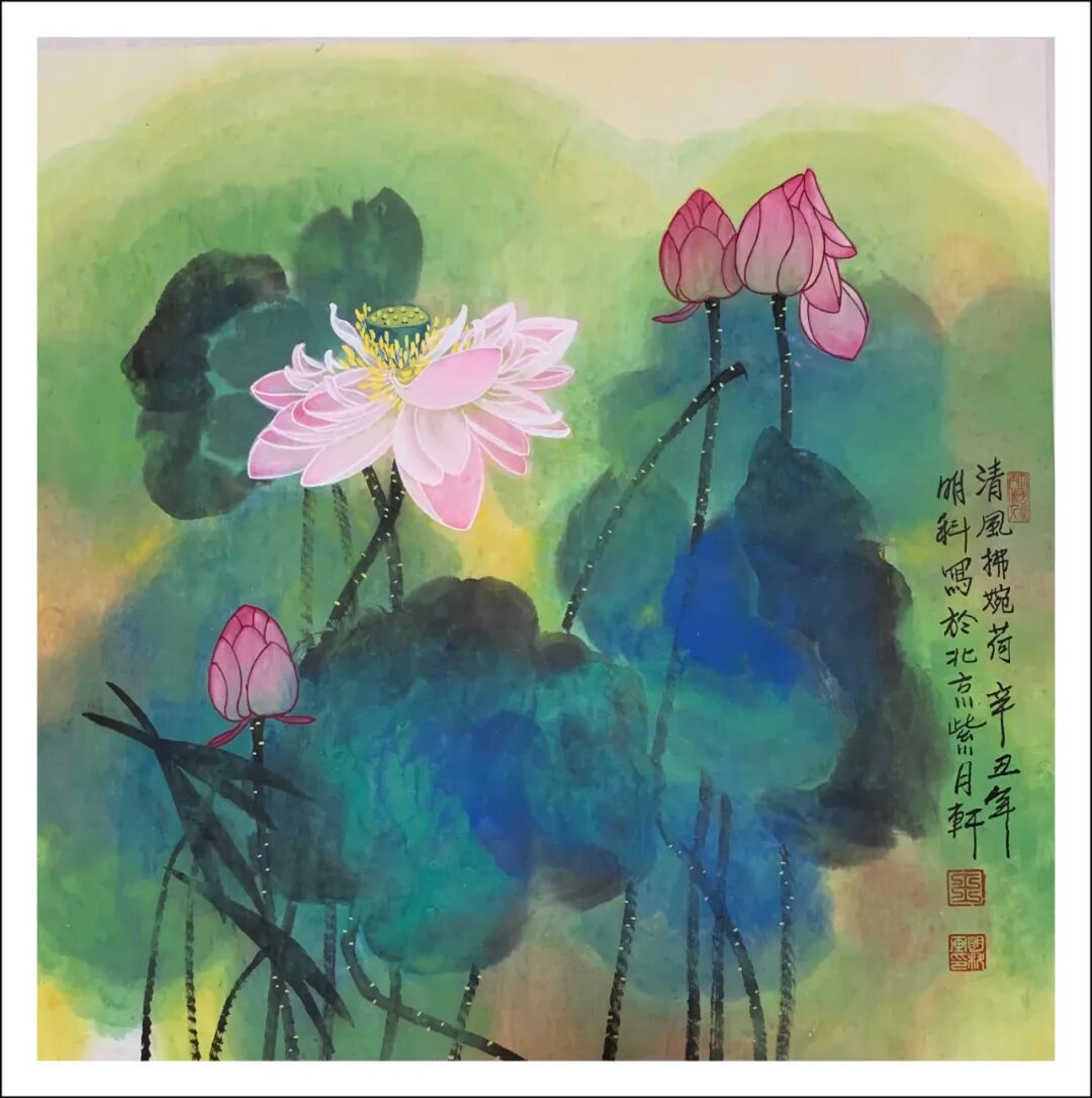 清风拂婉荷 生宣工写彩墨 68X68cm 2021年 王明科