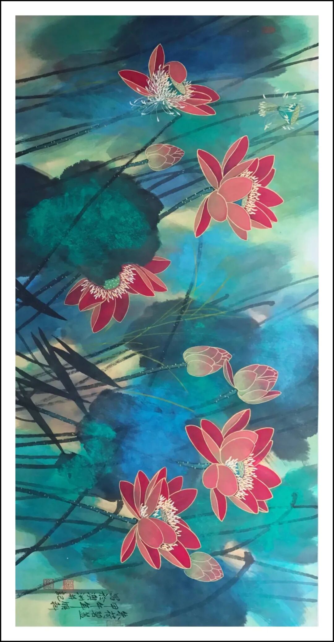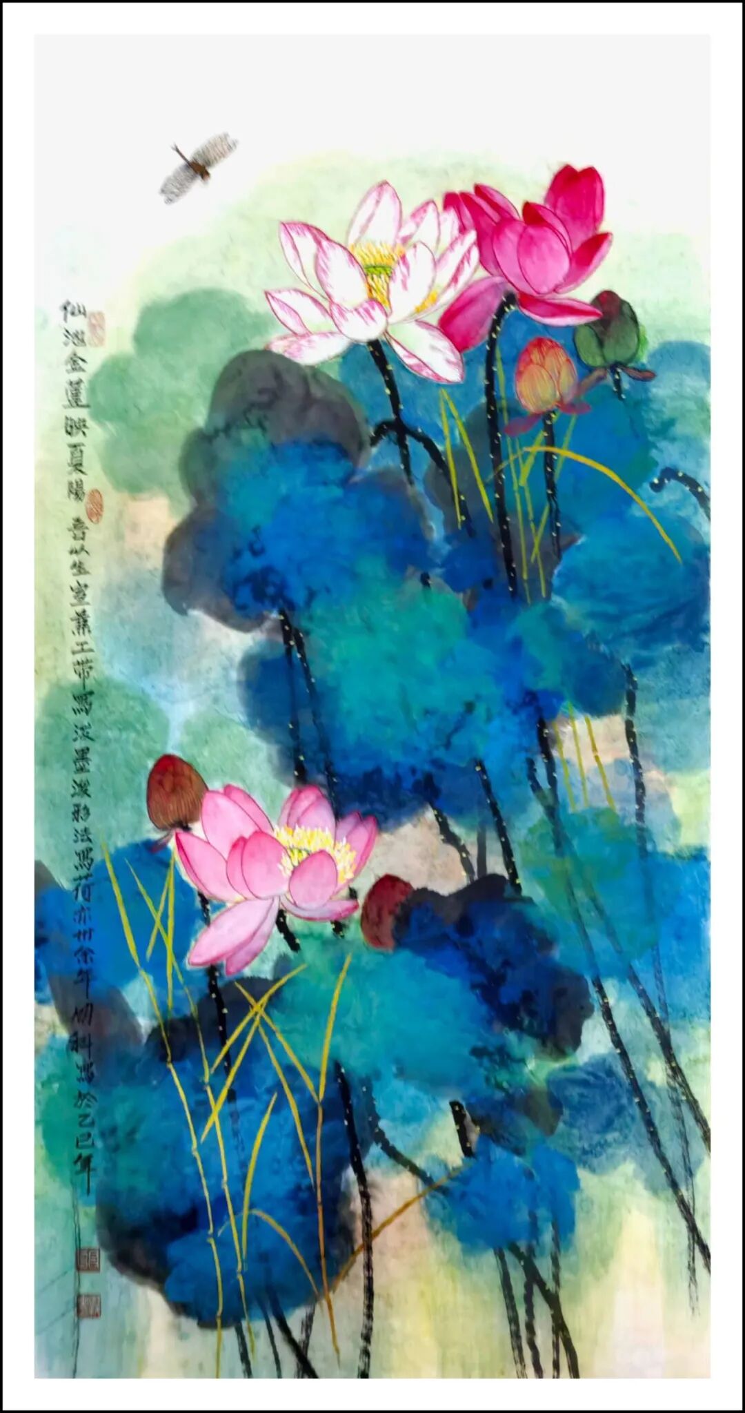 朱荷碧盖 生宣工写彩墨 136x68cm 2014年 王明科