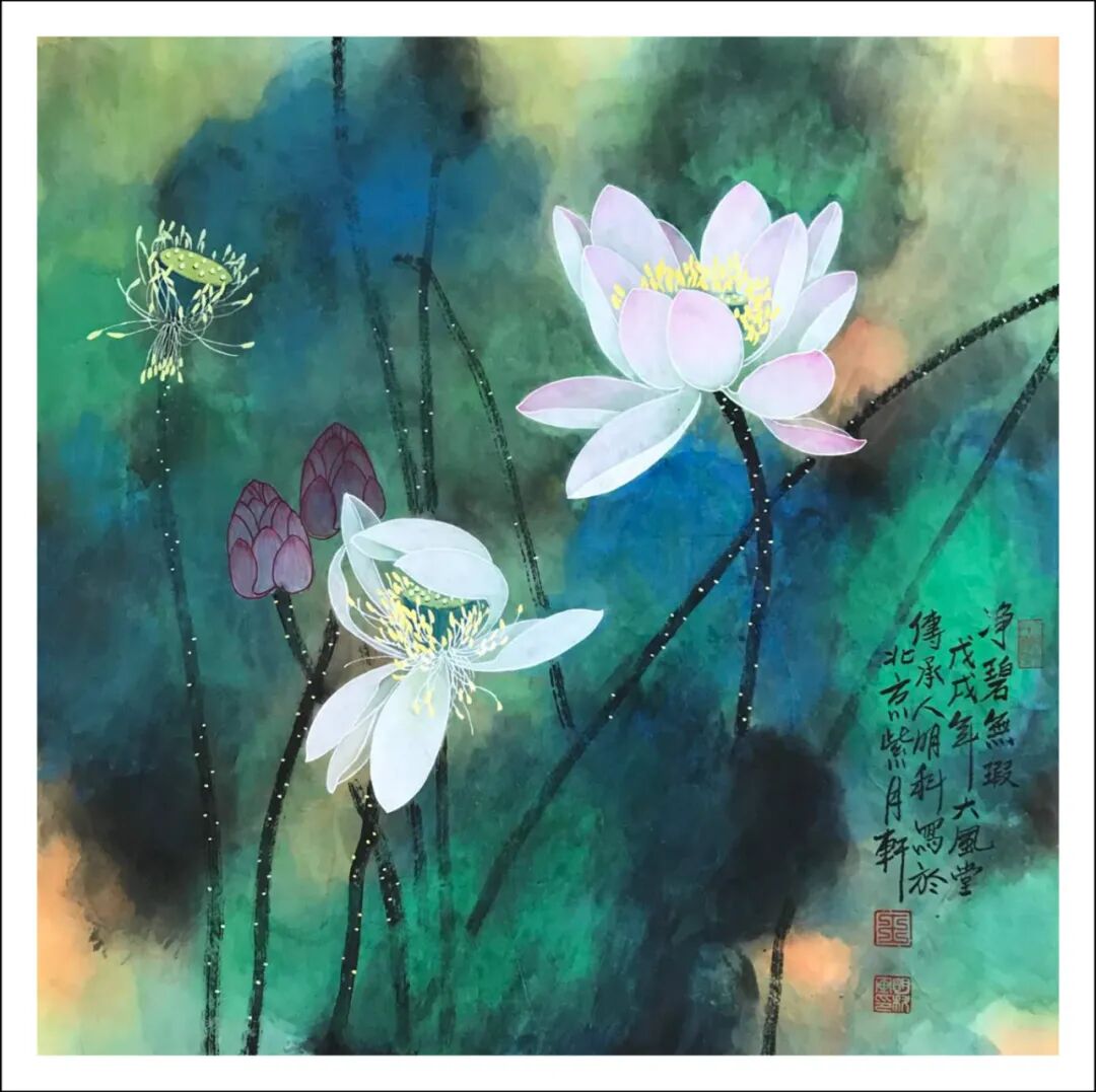 白荷 生宣工写彩墨 68x68cm 2017年 王明科