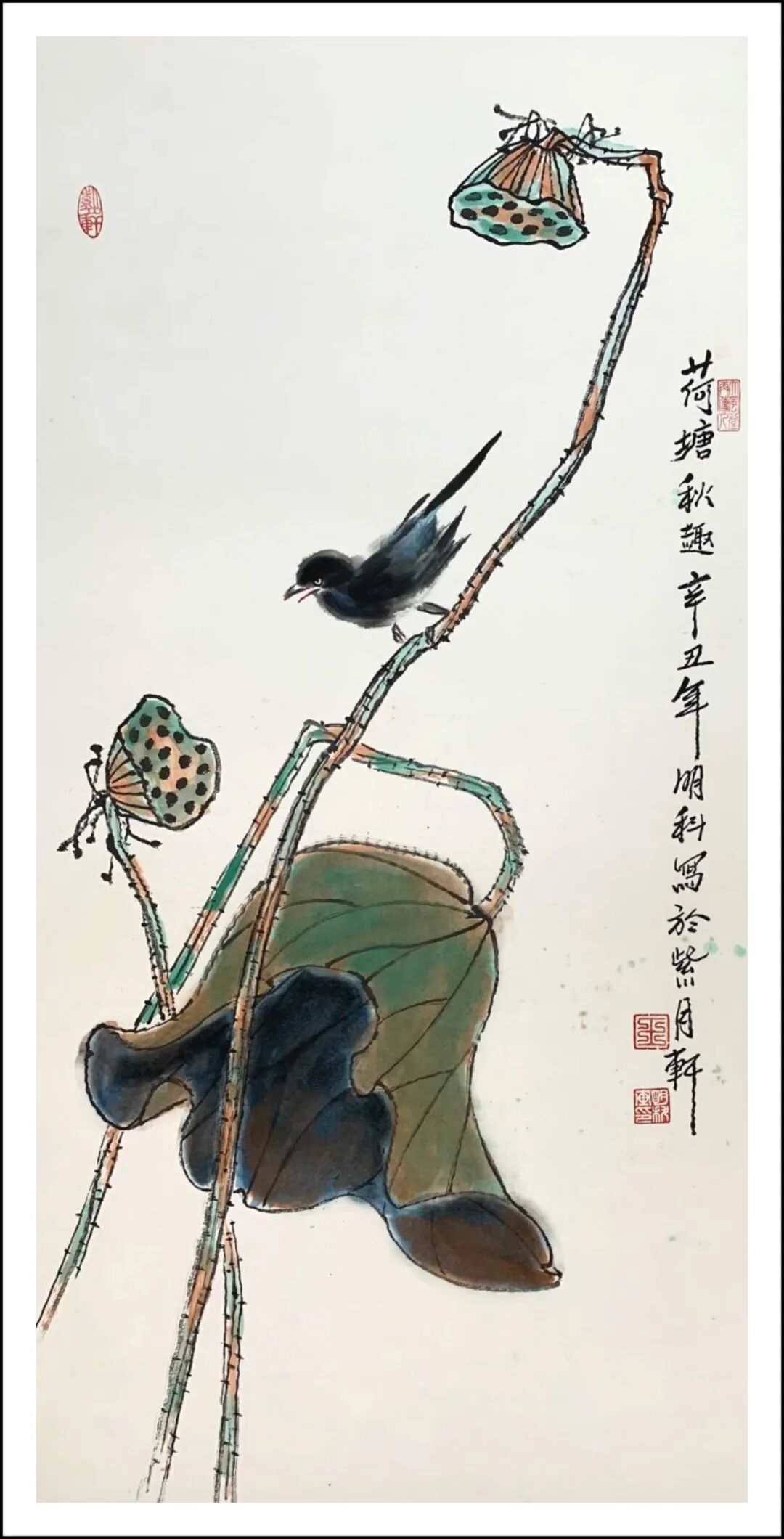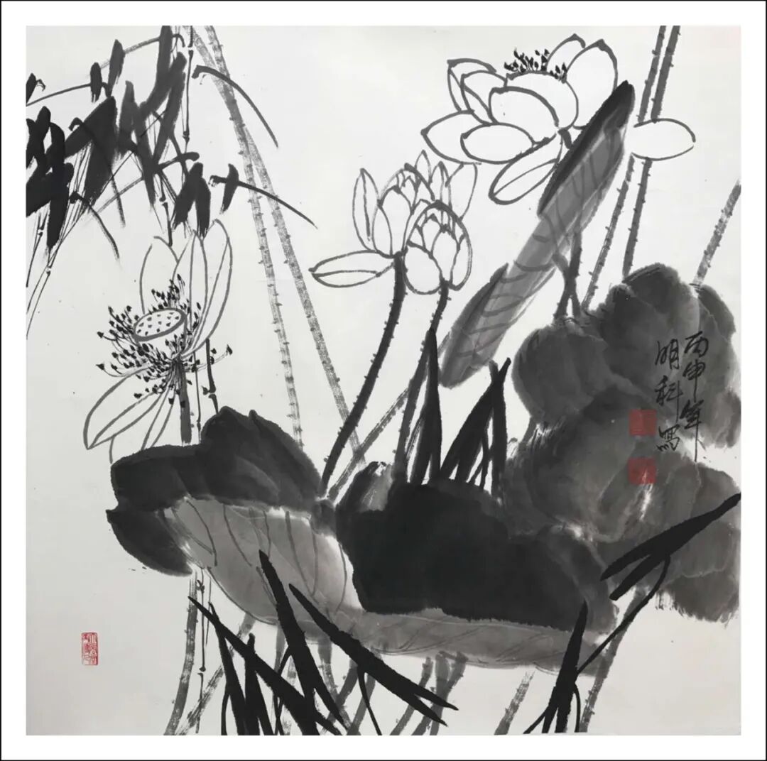 秋莲 生宣工写彩墨 68x68㎝ 2020年 王明科