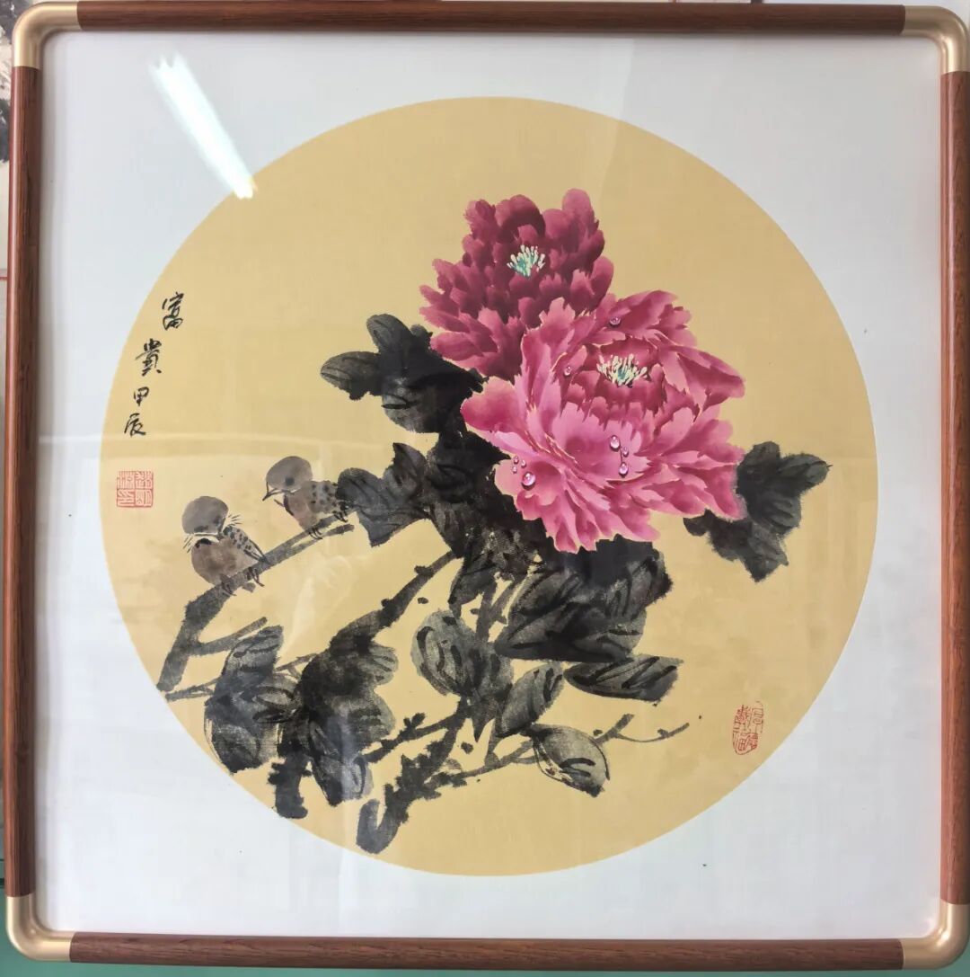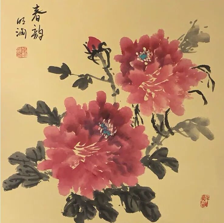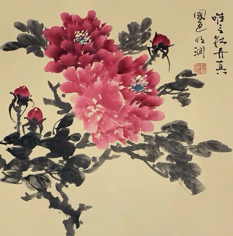 步入著名画家赵明渊先生的作品世界,如踏入一座气象万千的精神园林。笔下牡丹最能体现富贵中正的君子品格,浓艳的胭脂色里藏下苍劲骨力,柔媚的叶片间透出金石般筋脉。含露迎风之态,向日舒烟之姿,观其墨彩交融处可见清露未晞的湿润,花瓣转折处暗藏风势走向,大有笔所未到气已吞的妙境。这种以遒劲写婀娜的笔法,将写生推至写神的境界,让花王牡丹褪去俗艳表象,绽放出天香夜染衣的弘大之美。赋色之道既有积色成彩的厚重,又得水晕墨章的清透,朱砂藤黄碰撞出朝霞的绚烂,石青赭石于氤氲间沉淀出古玉的温润,一派生机勃发的视觉盛宴,于出笔下,成于修养!