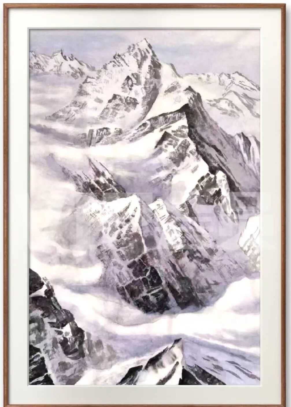 赵先生开创的高原冰雪山水在传统外另辟蹊径,以宿墨积染塑造千年冻土,用枯笔飞白勾画冰川肌理,黑入太阴,透出凛冽寒光。借古不泥古的创造,让咫尺万里的胸襟与冰川的元气淋漓相遇,成就了山川与予神遇而迹化的哲思。山水对高原光影的捕捉,既得阴阳陶蒸妙理,又具现代构成新意,在雪色苍茫中建构起雄浑与空灵并存的审美空间,寒山积雪的主题成为冰河初开的礼赞!